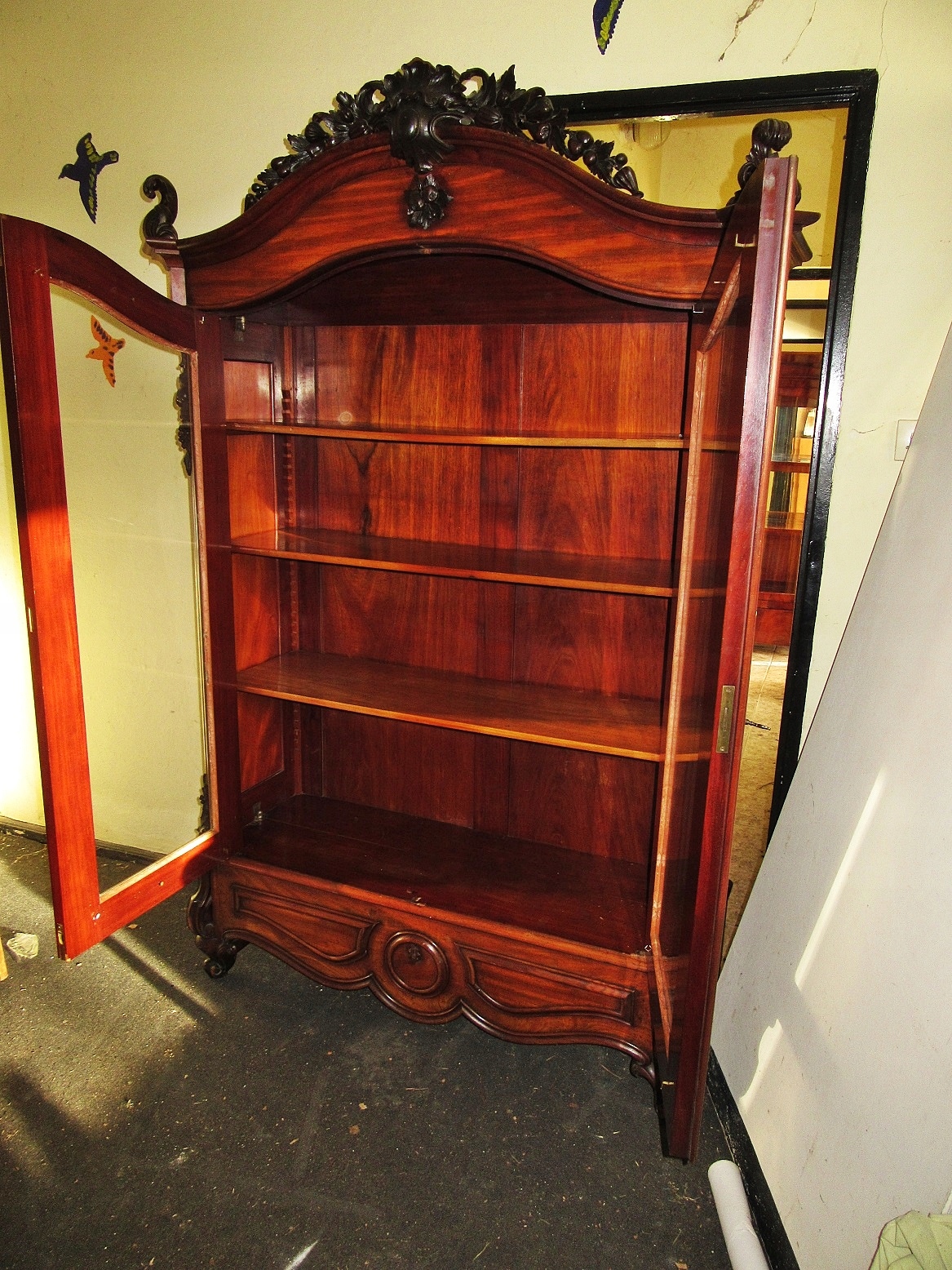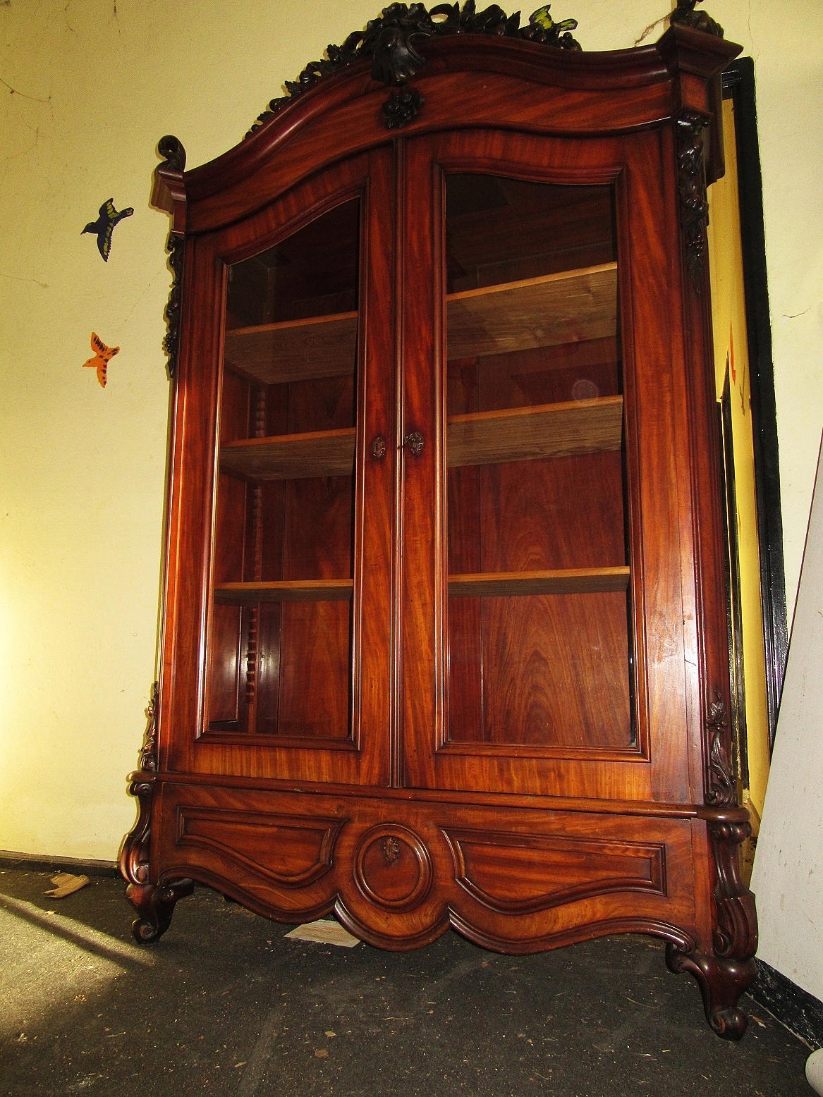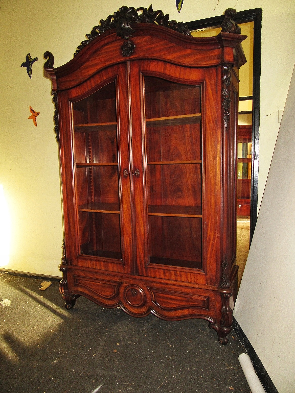 Красивая библиотека 19 века в стиле Луи-Филиппа, красивая форма и мастерство исполнения, оригинальная библиотека Луи-Филиппа датируется второй половиной 19 века, примерно 1860 годом. Форма этого предмета мебели чрезвычайно красива и утонченна, в мебели заметны черты Людвика – декоративное ажурное кружево, изысканные углы на карнизе, пилястры по краям, красивые стильные ножки, делающие ее неповторимой. украшение любого интерьера. Внутри три полки с возможностью регулировки их расположения; В нижней части мебели имеется ящик. Мебель полная и в оригинальном состоянии, все замки рабочие, ключ в комплекте. Складывается для транспортировки. Это красивая, полностью оригинальная старинная вещь, а не послевоенная копия! Мебель из 80% массива красного дерева. Размеры: высота 198см, ширина 125см.