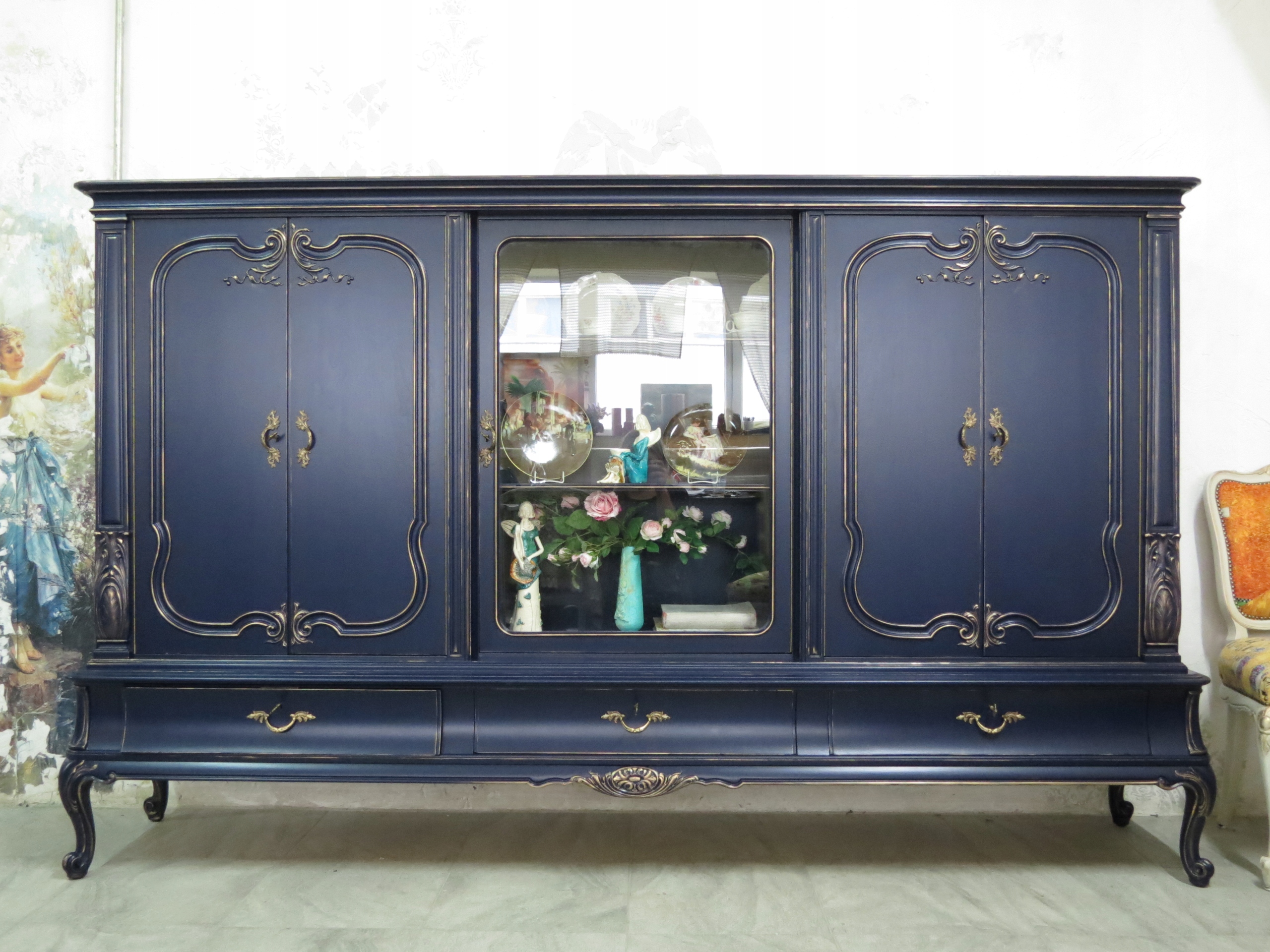 Представляю красивый многофункциональный предмет мебели, библиотеку, витрину и шкаф, все из ореха, красивой резьбы, 3 ящика, очень вместительный и практичный. Мебель окрашена в темно-синий цвет с небольшим количеством золота и очень элегантна.В целом создается красивое целое, и я думаю, что оно быстро найдет своего хозяина.