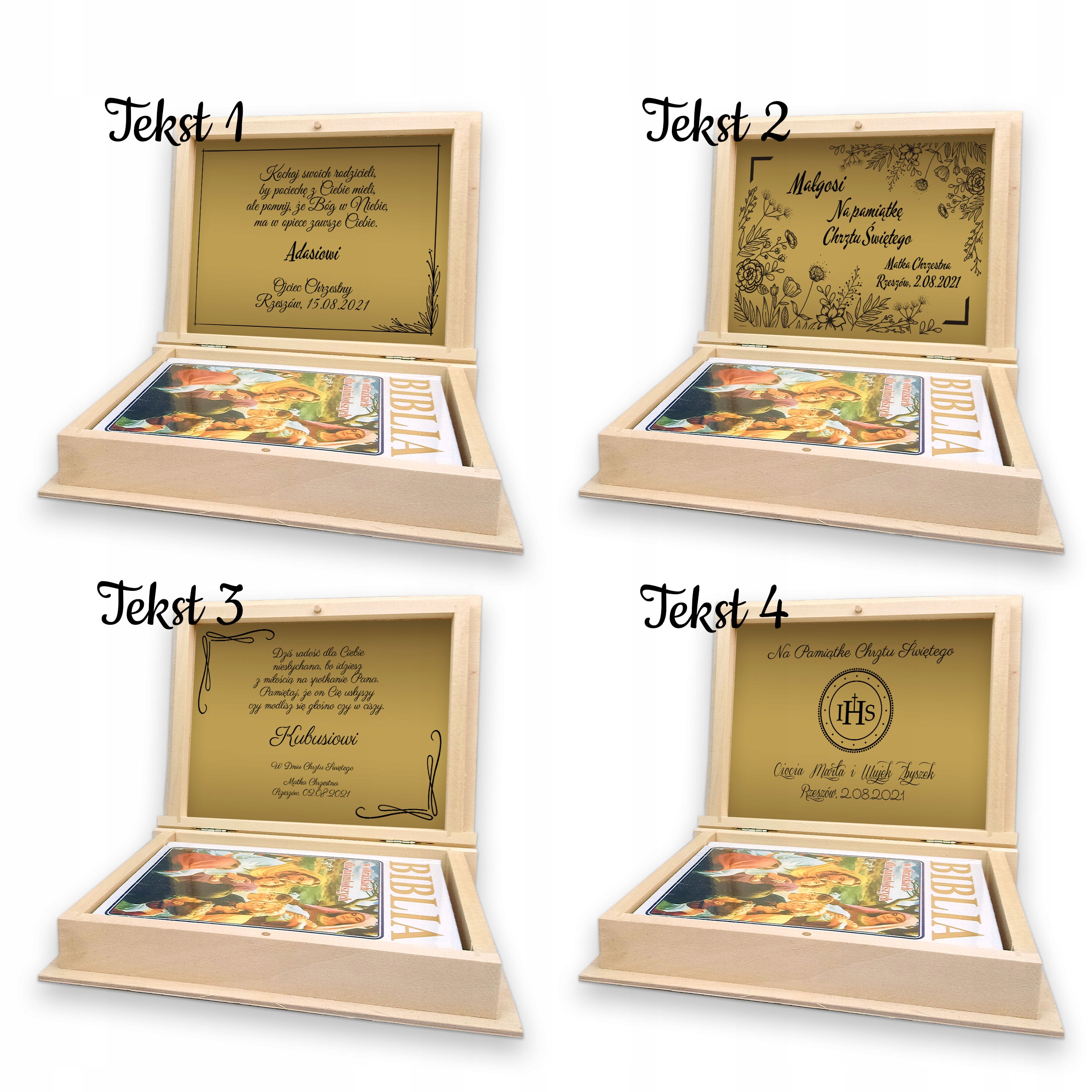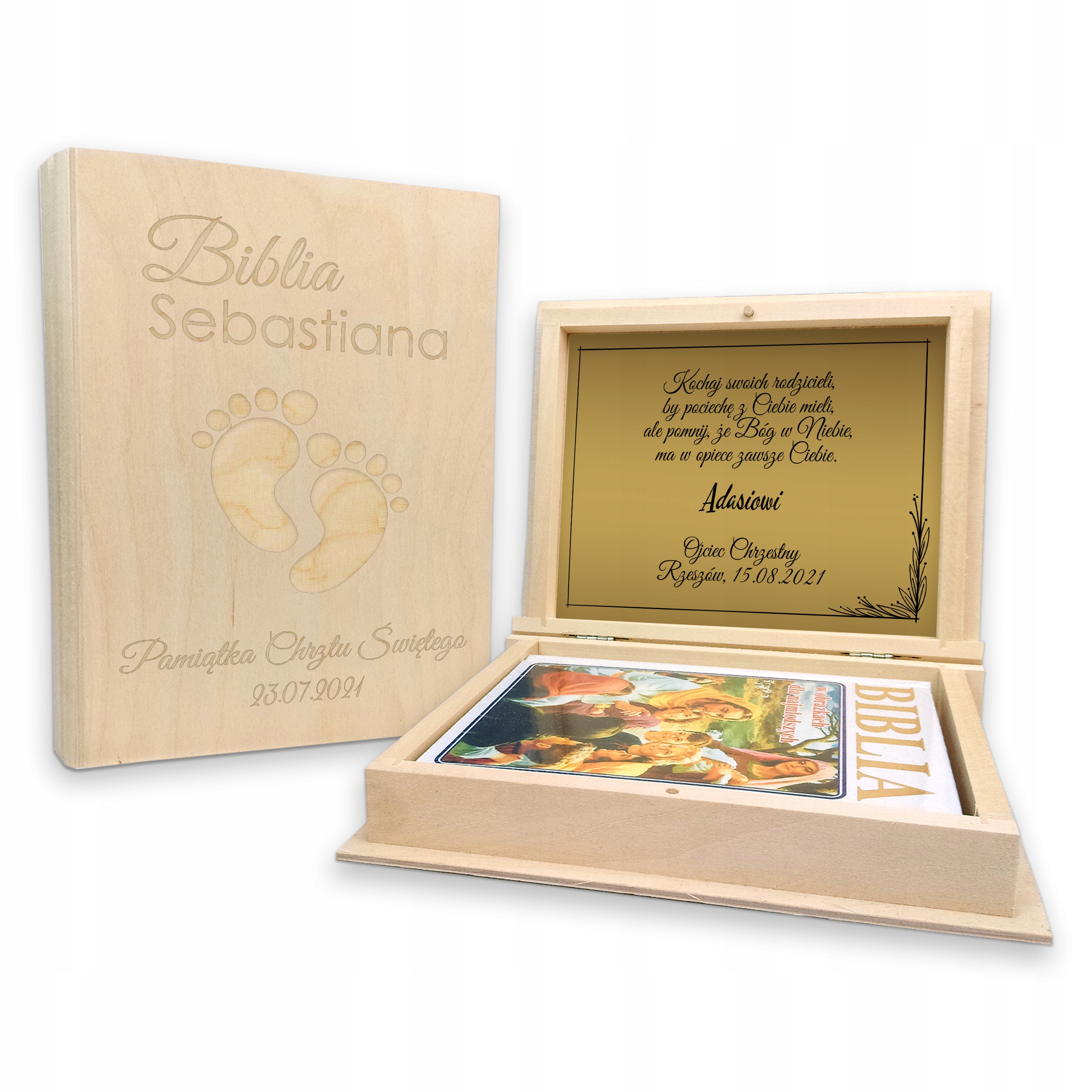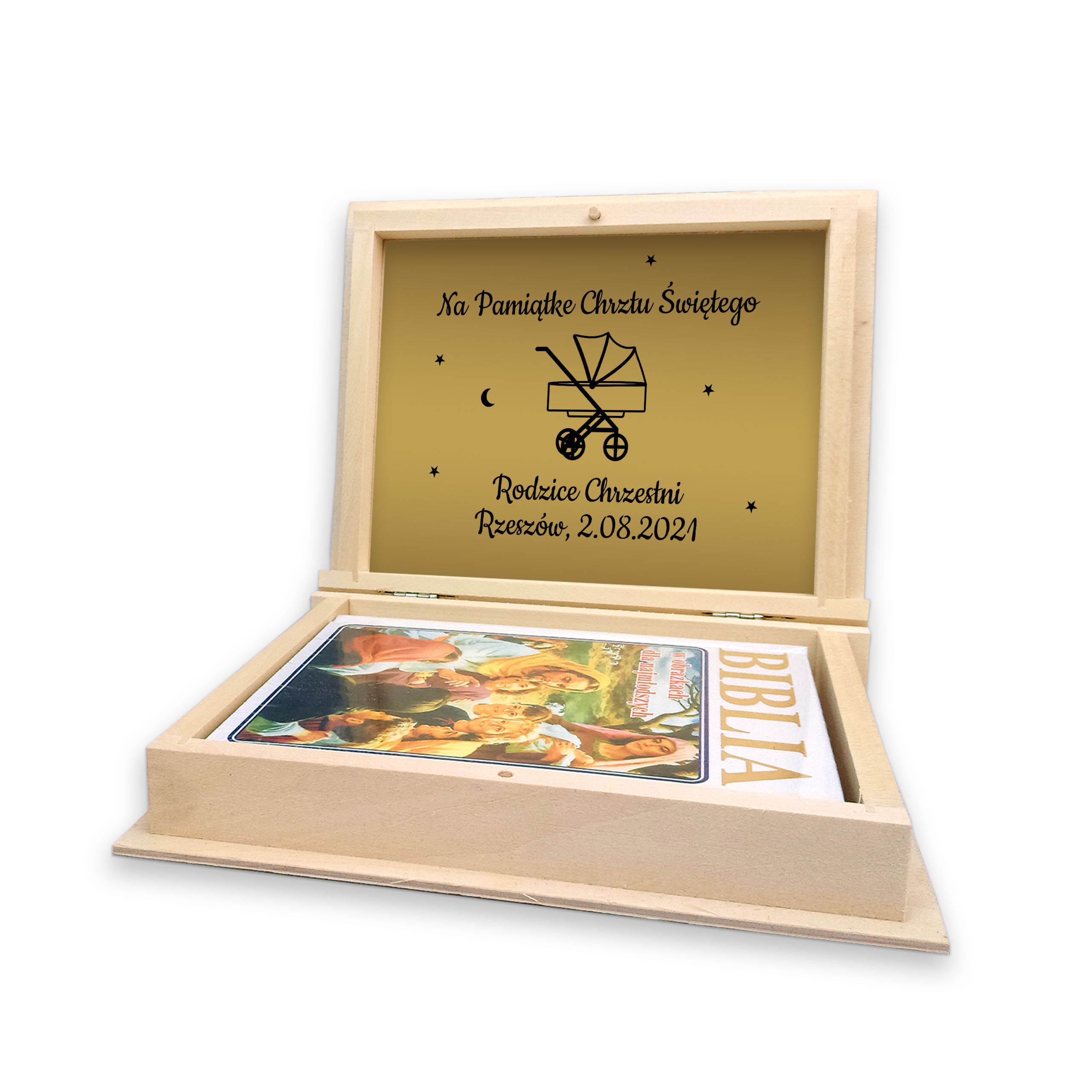 БИБЛИЯ С ИЗОБРАЖЕНИЯМИ В ДЕРЕВЯННОЙ КОРОБКЕ С ГРАВИРОВКОЙ – прекрасный подарок к торжественному Таинству Святого Крещения.