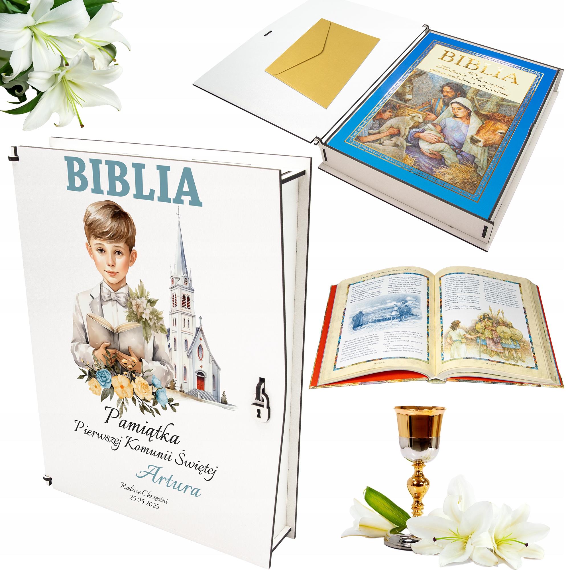 ⭐ Вот новый взгляд на самую необычную историю всех времен ... » Библия. История спасения, рассказанная детям », - это иллюстрированная книга, которая в доступной и интересной способе приближает детей к самым важным событиям со старой и новой волей. Практический Подарок для Первого святого причастия выберите Библию в белой персонализированной uv -print box