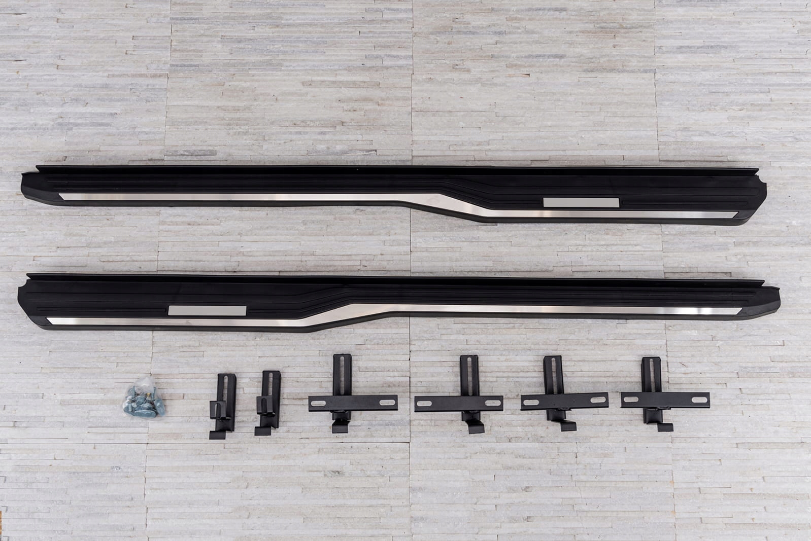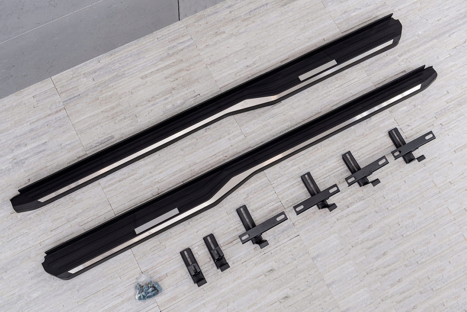 В комплект входит набор боковых подножек (правая и левая), элементы для сборки и инструкция. Пороги монтируются на заводские точки крепления. Установка ступеней не требует сверления дополнительных отверстий! Мы рекомендуем профессиональную сборку в мастерской (по опыту знаем, что лучше всего воспользоваться услугами покрасочной или кузовной мастерской, поскольку на этих заводах чаще всего устанавливают планки, плинтусы и ступени, поэтому сборка этих установок требует b>интуитивной деятельности).