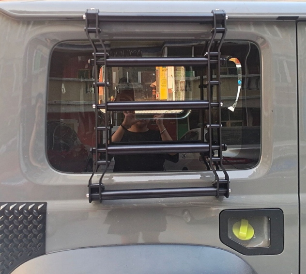 боковая лестница Сузуки Джимни JB74. Вам нужно дополнительное место, чтобы прикрепить ловушку, канистр или просто крышку заднего стекла? Не -инвазивная сборка, не требует бурения.