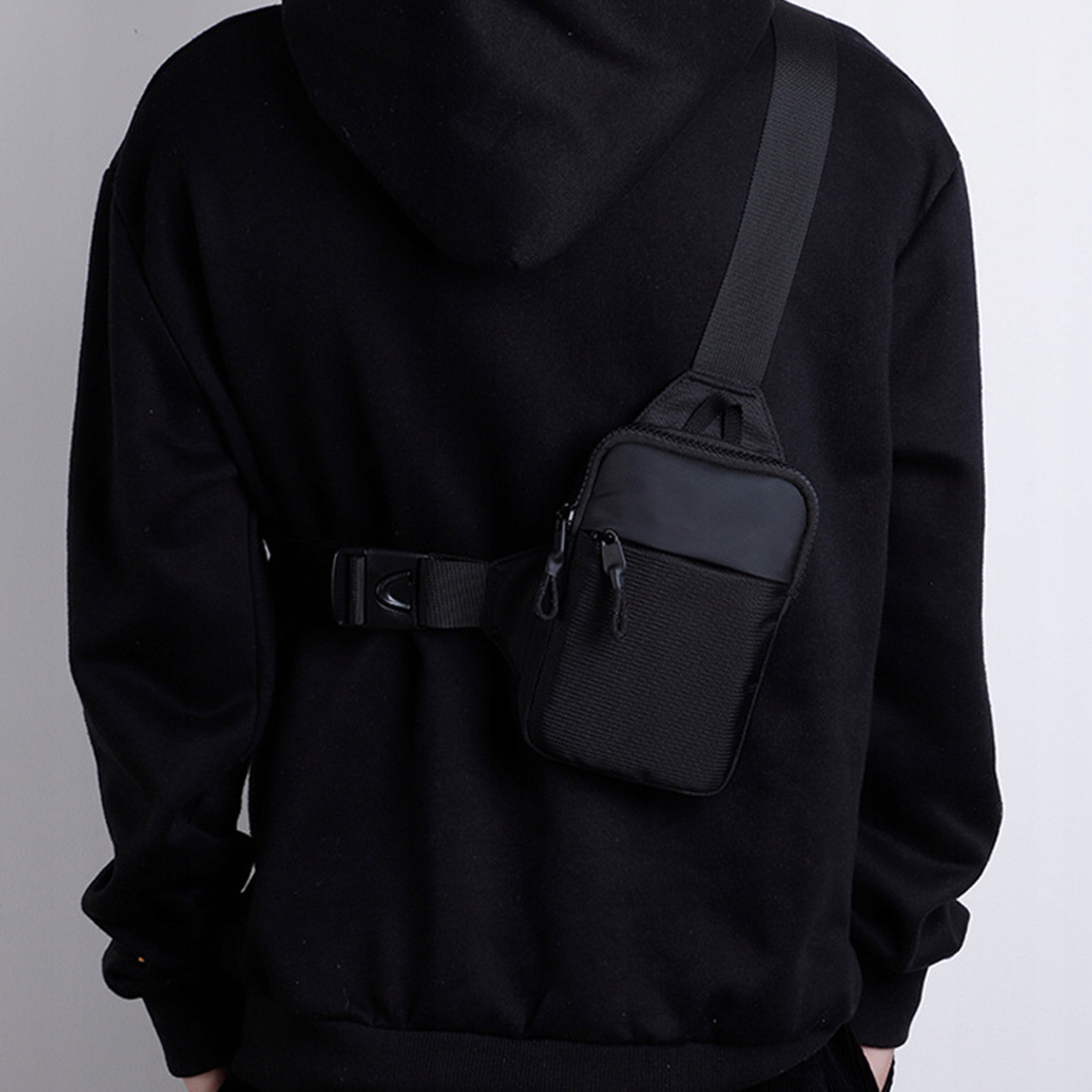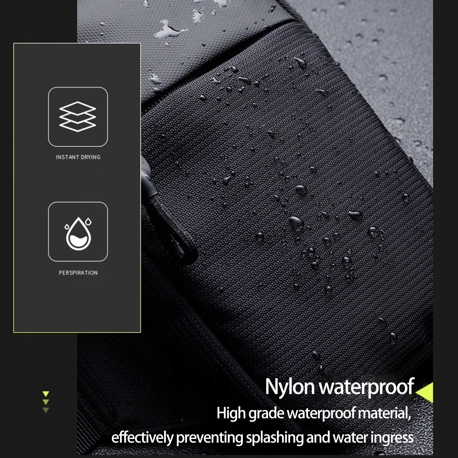 4. Водонепроницаемый нейлоновый материал: мужская подвесная сумка изготовлена из нейлонового материала, эффективно предотвращающего разбрызгивание и попадание воды.