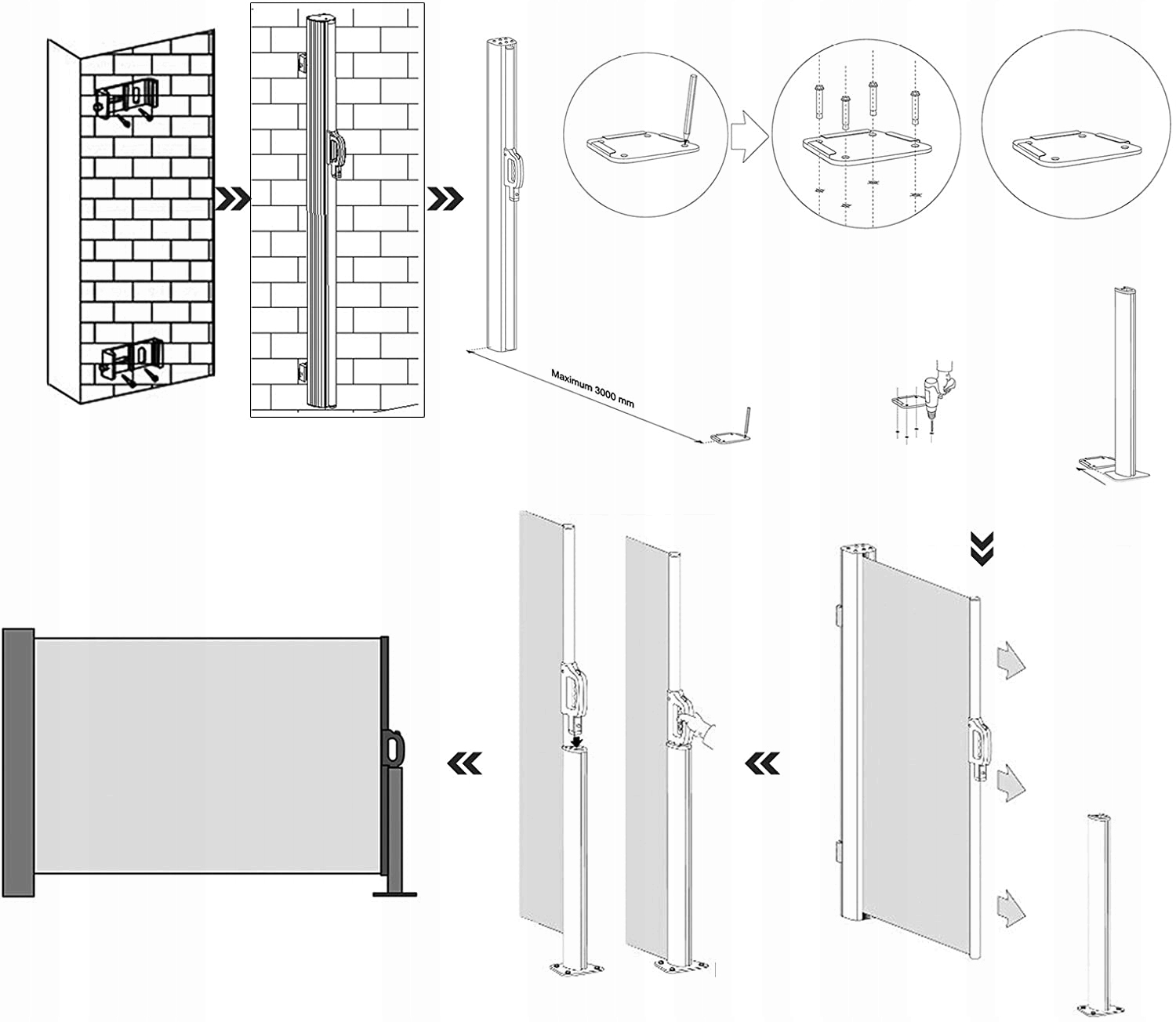 - Тентполностью выдвигается, обеспечивая защиту от дождя, пыли и сильного ветра, которые могут повредить экран.