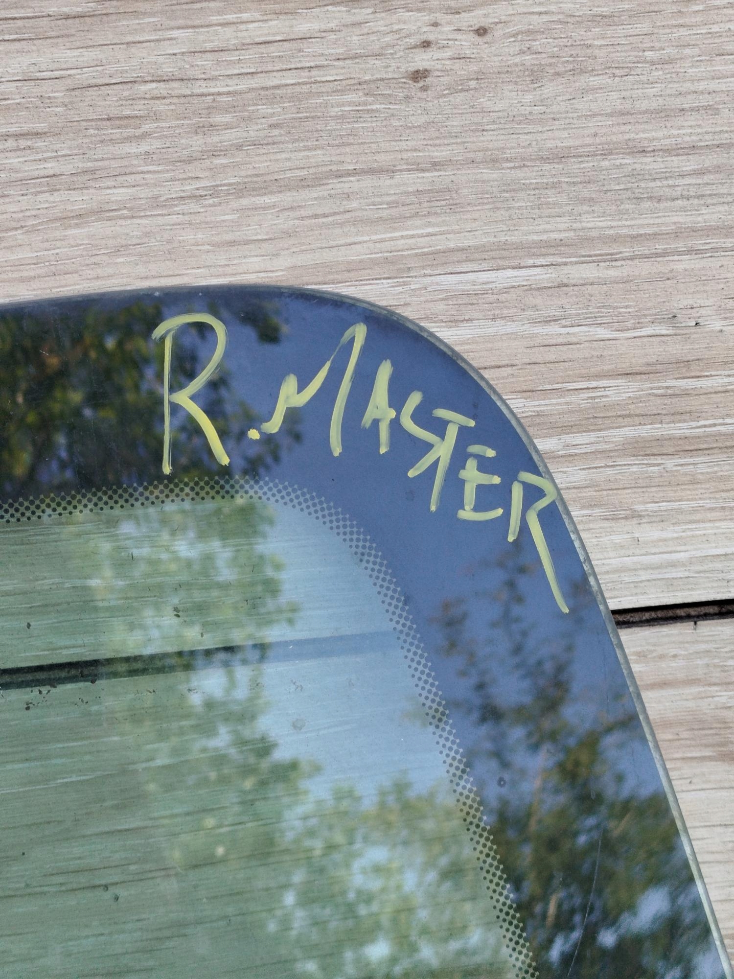 П.П. - Стекло справа от автомобиля, спереди