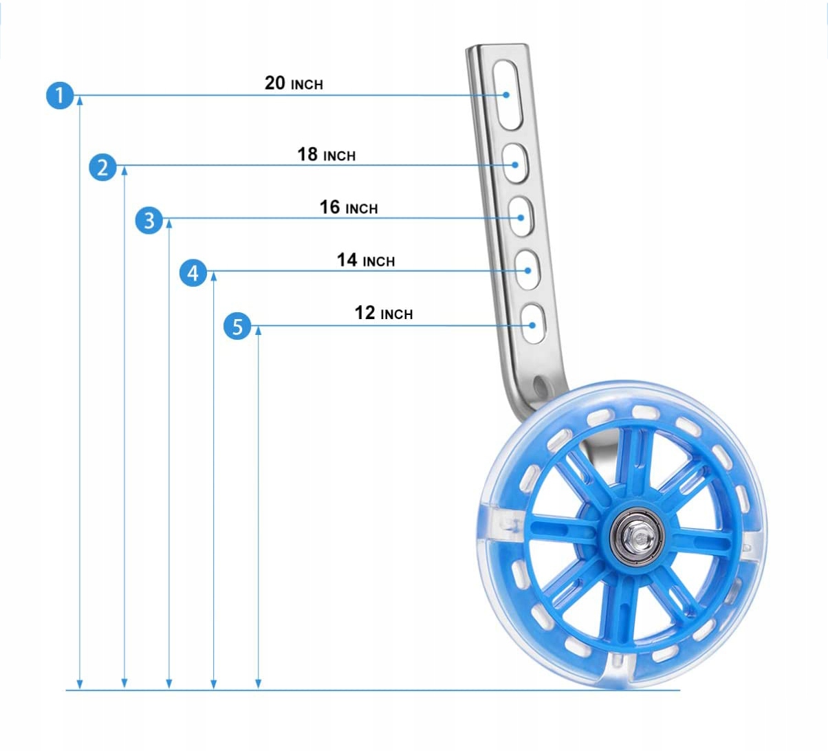 - Обучающее колесо регулируется и подходит для велосипедов диаметром 12–20 дюймов, что позволяет подогнать размер под велосипед вашего ребенка.