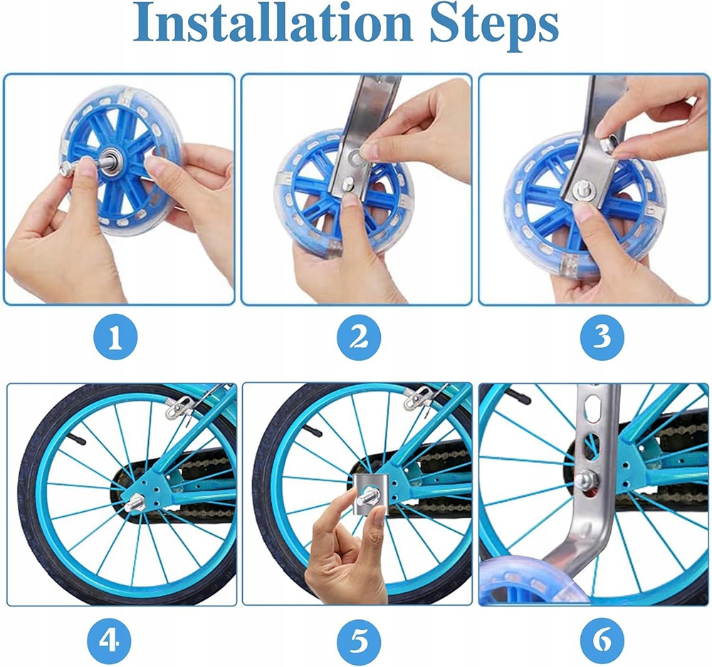 【Высококачественные материалы】 Наши тренировочные колеса изготовлены из высококачественных, долговечных материалов и сильных металлических опор, что обеспечивает дополнительную стабильность и безопасность, а также гарантирует безопасность детей. Следовательно, этого достаточно, чтобы установить боковые колеса с штативами, чтобы дети могли безопасно использовать велосипед.