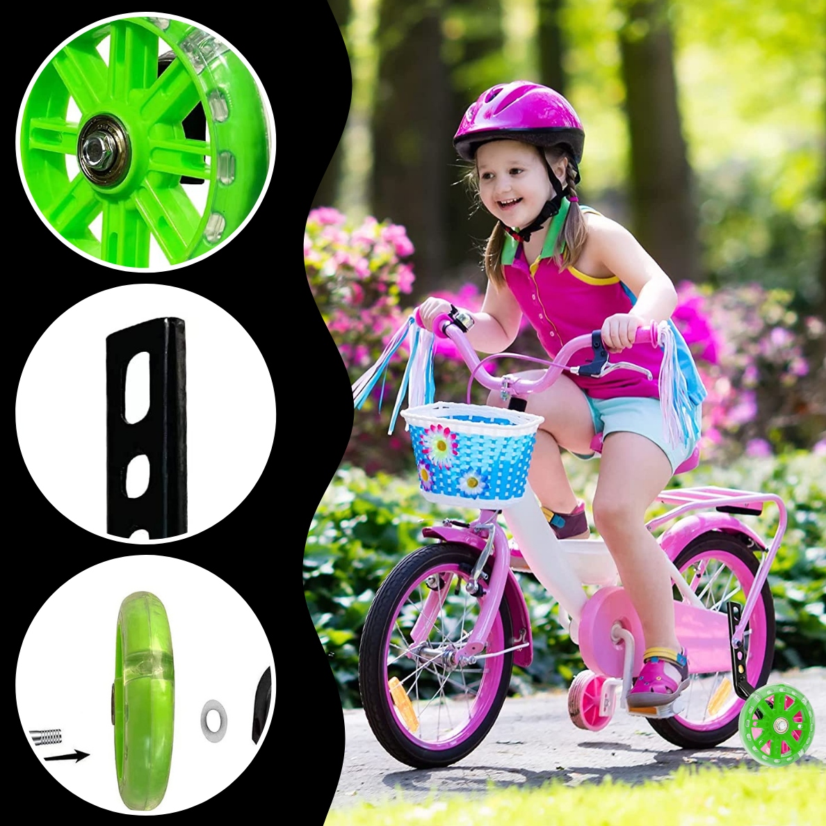 БОКОВЫЕ ПОДДЕРЖИВАЮЩИЕ КОЛЕСА ДЛЯ ВЕЛОСИПЕДА 12–20 ФУТОВ СВЕТОДИОДНЫЕ ЗЕЛЕНЫЕ