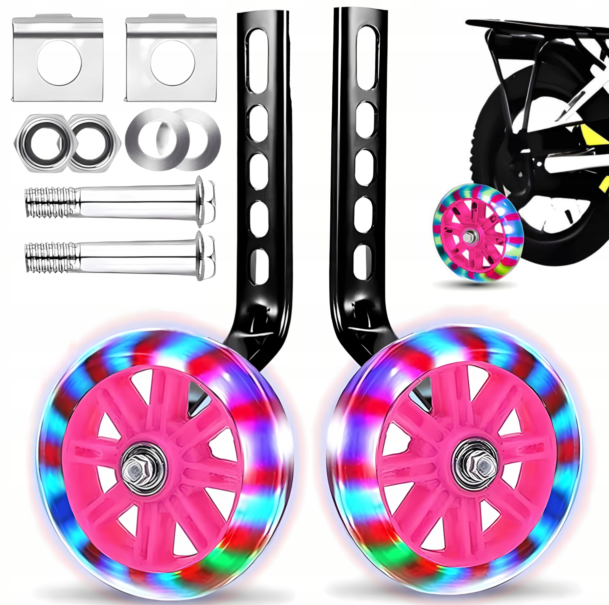 БОКОВЫЕ ПОДДЕРЖИВАЮЩИЕ КОЛЕСА ДЛЯ ВЕЛОСИПЕДА 12–20 ДЮЙМОВ, УНИВЕРСАЛЬНЫЕ СВЕТЯЩИЕСЯ СВЕТОДИОДНЫМИ ЦВЕТАМИ