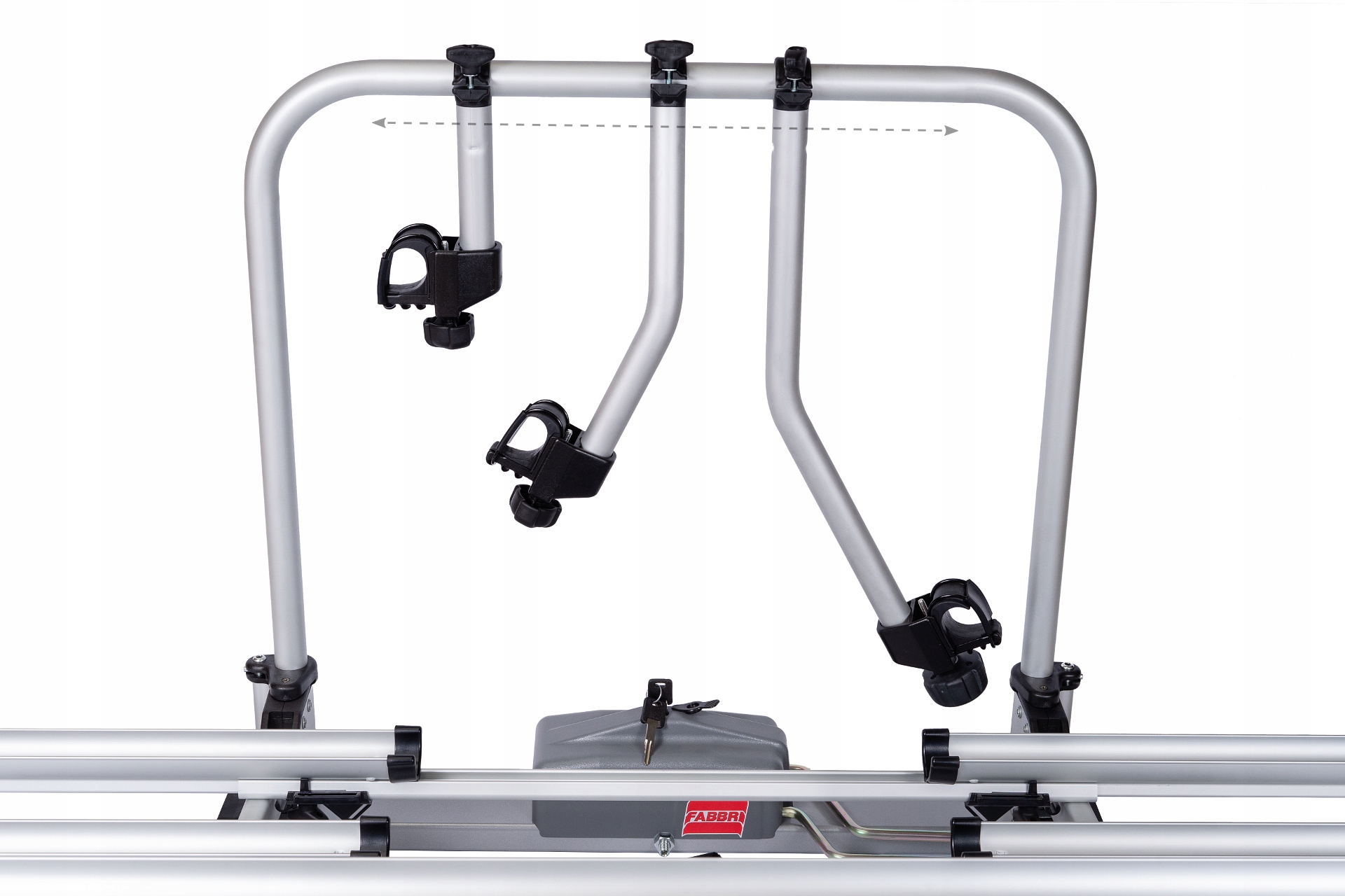 Телескопические направляющие регулируются по горизонтали от мин. 84 см до максимум 136 см. . Это позволяет перевозить велосипеды с колесной базой до 125 см.