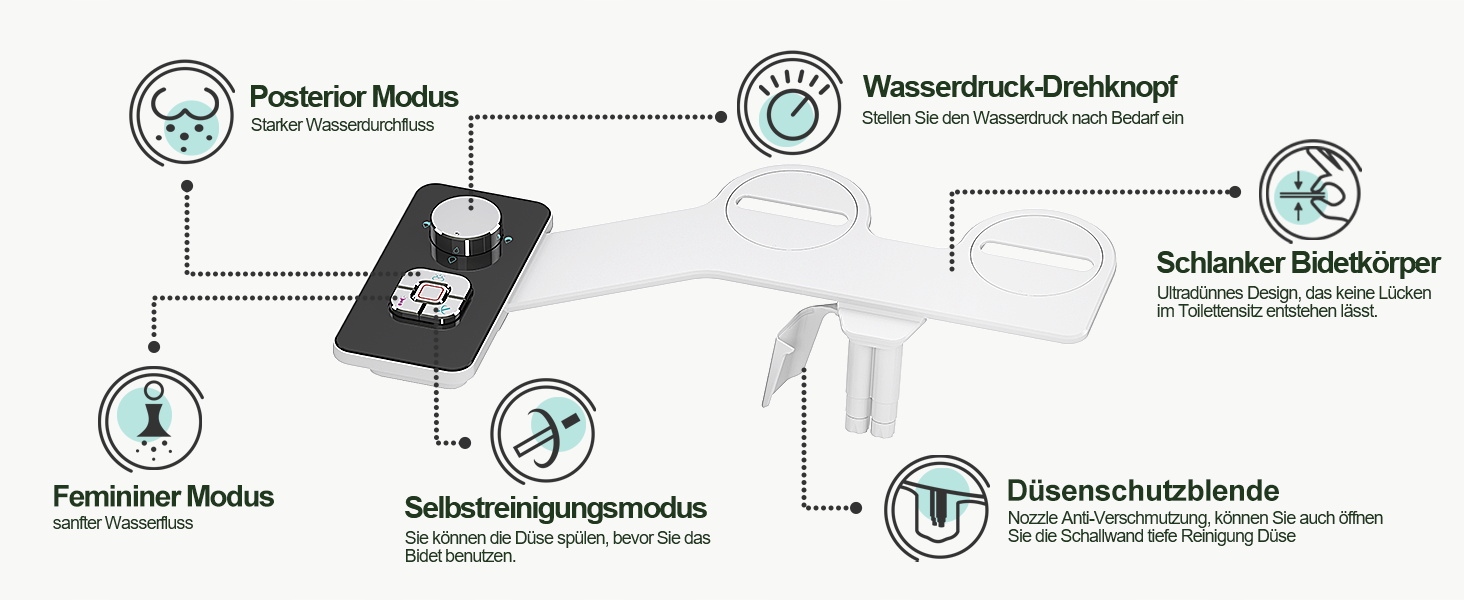 не -электронный биде с высококачественными аксессуарами, совместимыми с большинством туалетов.