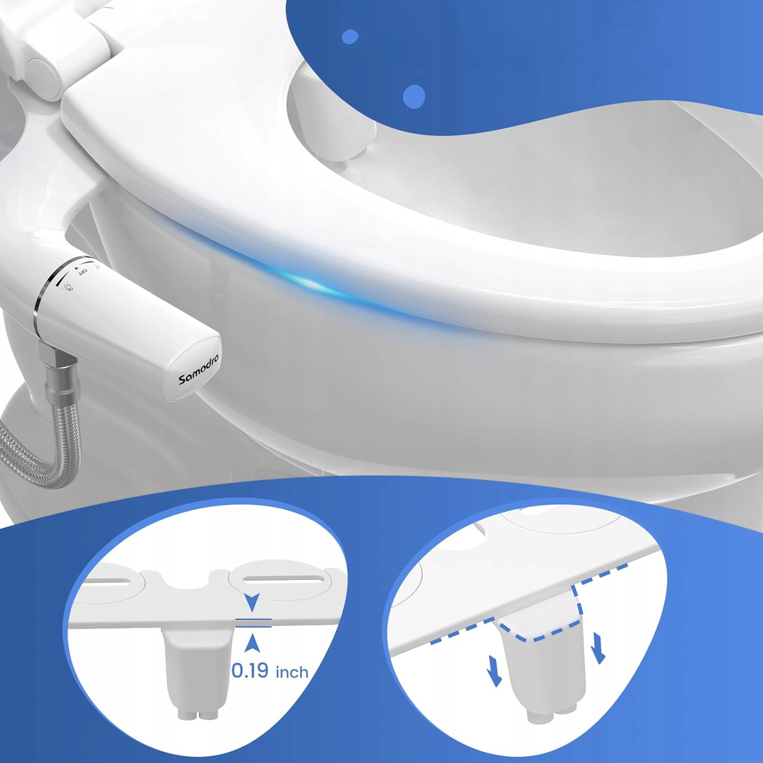 🧻-Верхняя часть насадки для биде имеет вогнутую часть, направленную вниз,благодаря чему насадка находится на соответствующем расстоянии от стопорного кольца унитаза. Это может предотвратить повреждение насадки через кольцо основания унитаза внешней силой при использовании унитаза.