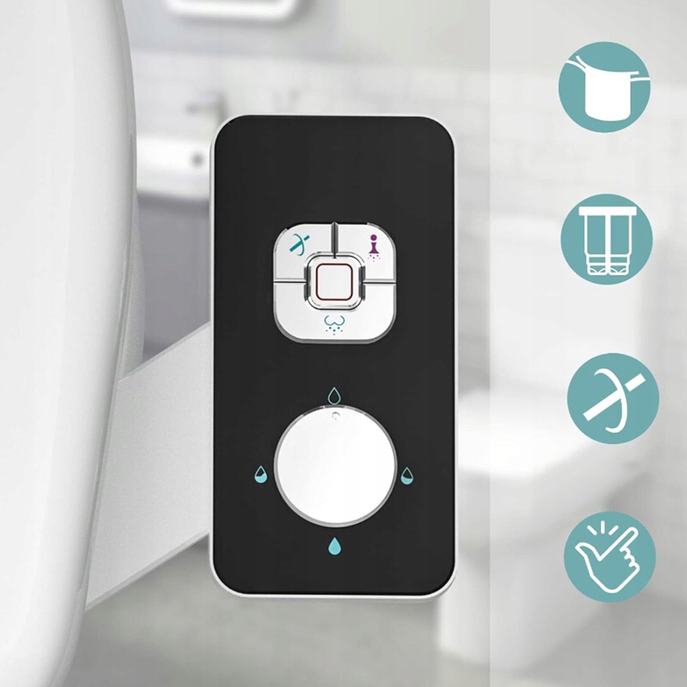 ✅ Тонкая и гладкая клавиатура толщиной всего 0,5 см: Эта вставка для унитаза-биде толщиной всего 0,5 см сохраняет нормальную высоту сиденья унитаза благодаря своему уникальному тонкому дизайну и при этом очень прочна. Элегантная черная панель сияет, а изысканные кнопки и ручки выглядят стильно и уникально.