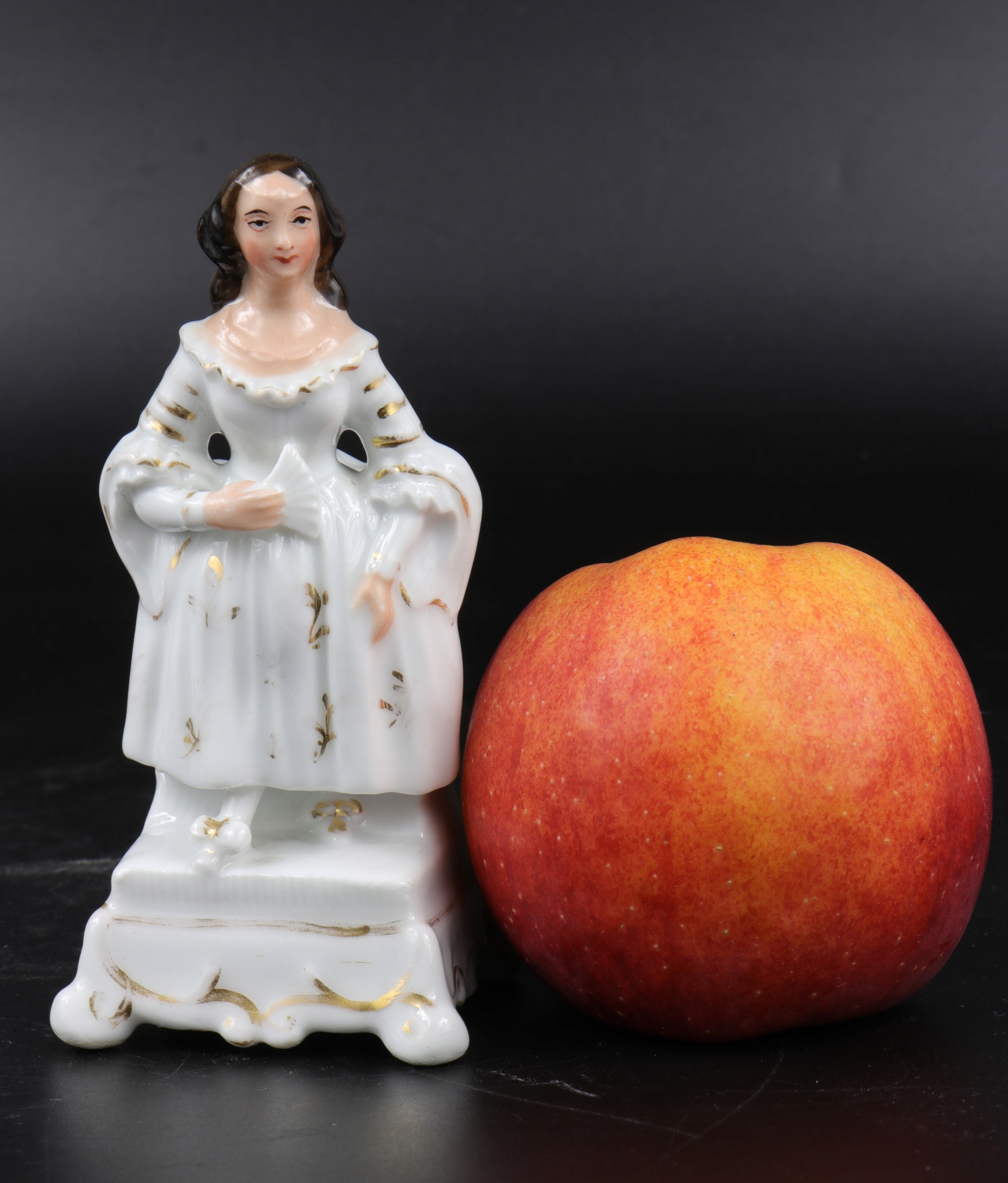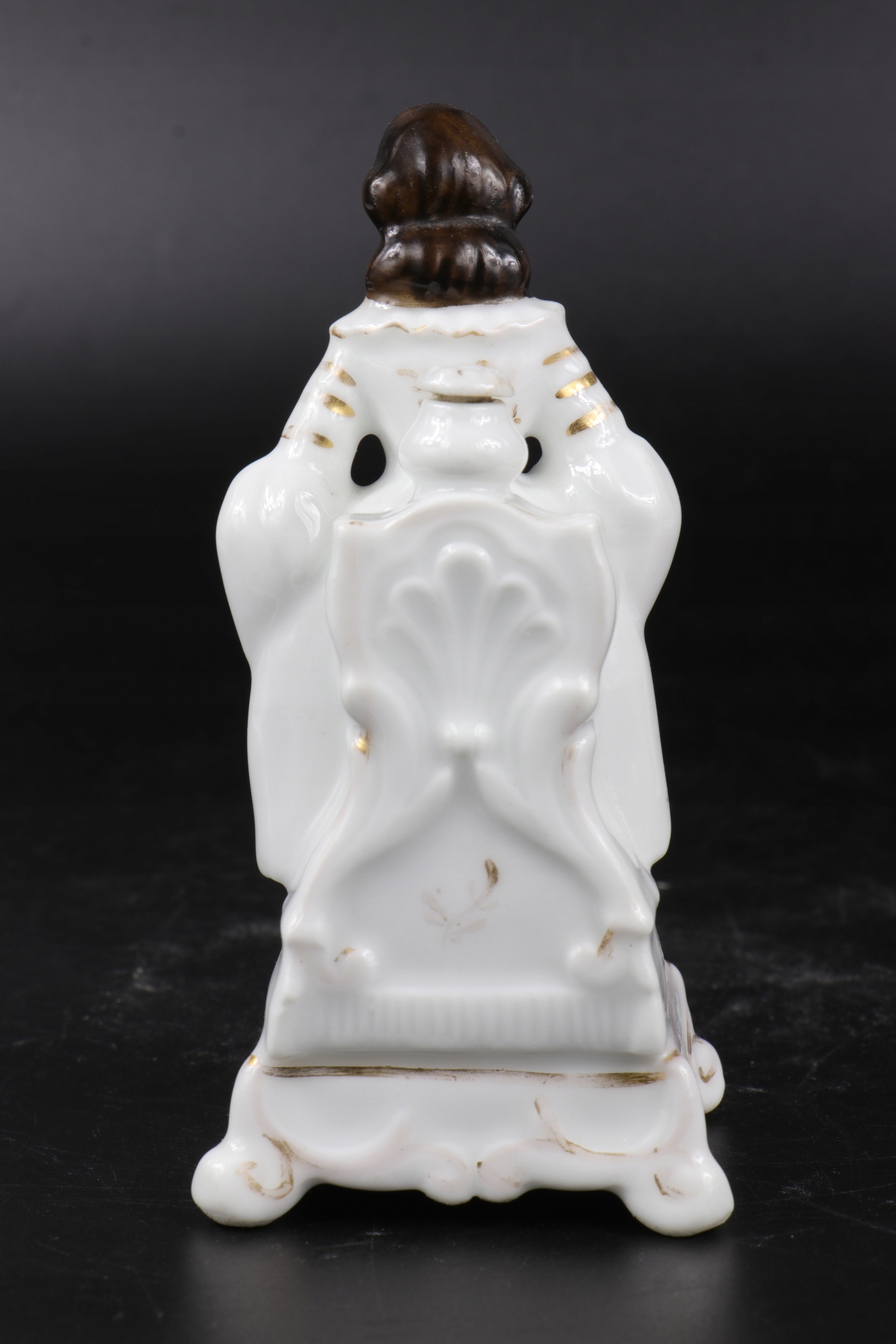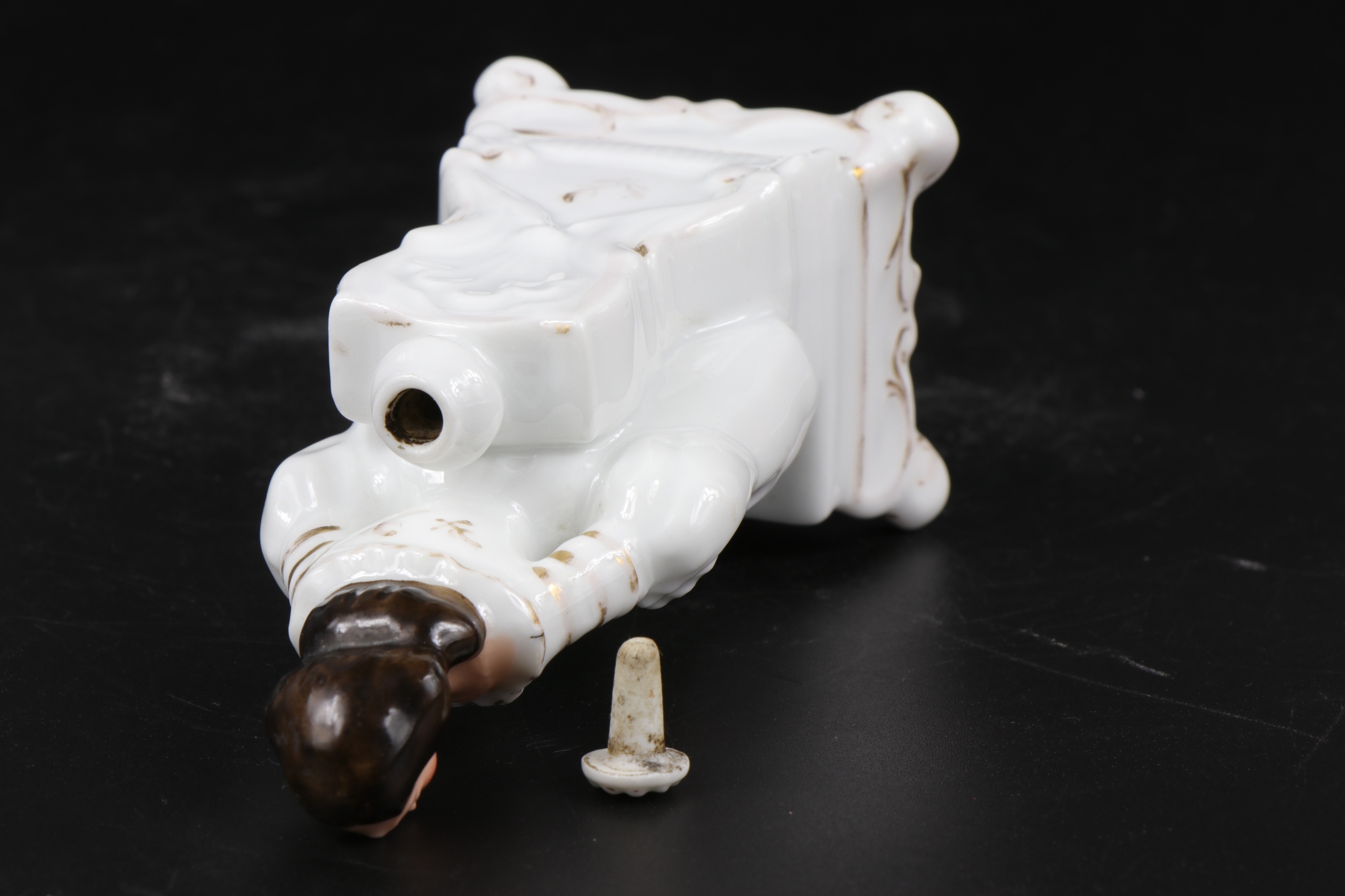 Интересный фигурный фарфоровый флакон, флакон, возможно, для духов или чернильница. Фарфор очень хорошо смоделирован, без подписи, но по стилю можно предположить, что он первой половины 19 века.