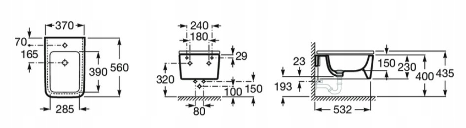 Биде подвешенная прямоугольная площадь Roca Inspira