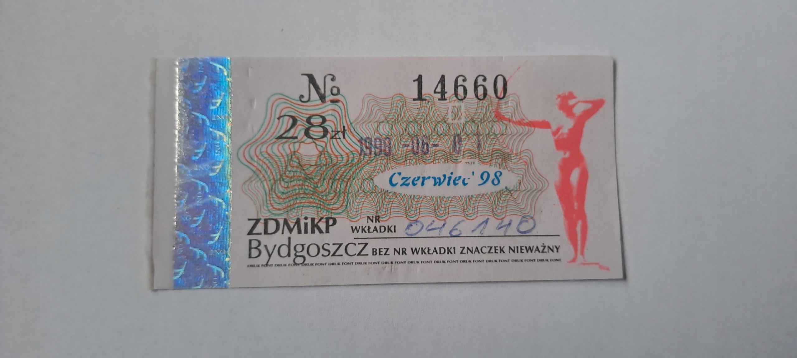 БИДГОЩ КВИТОК МІСЯЧНИЙ ШТАМП 06/1998