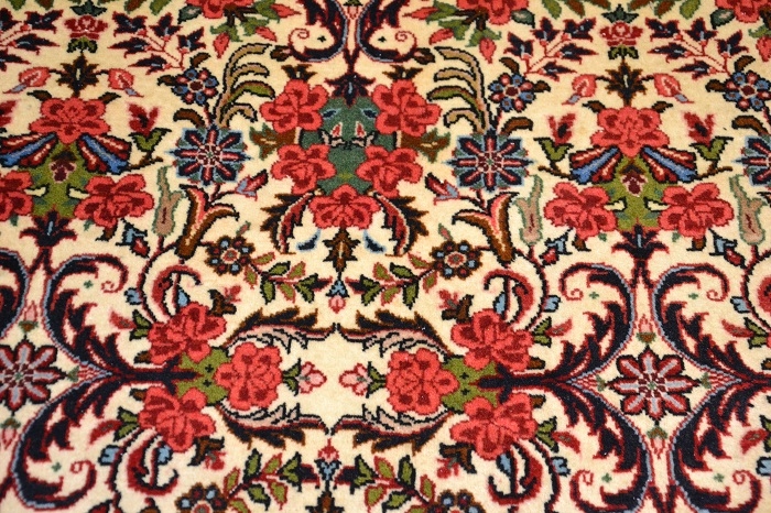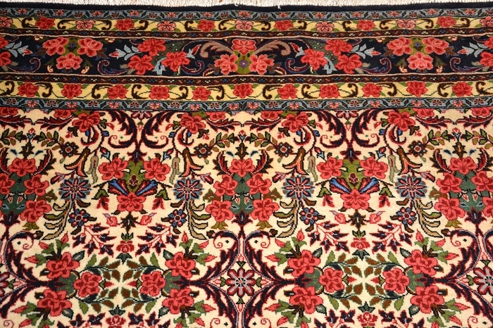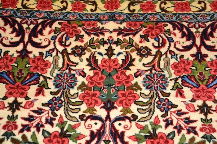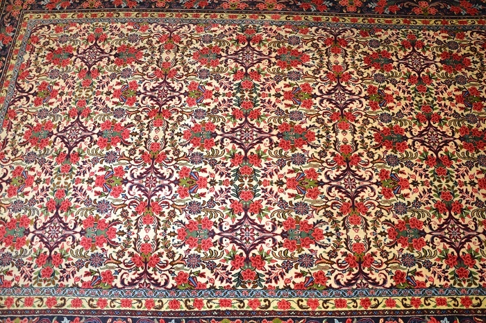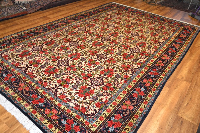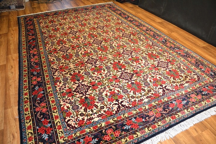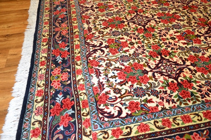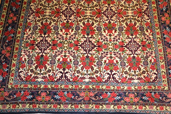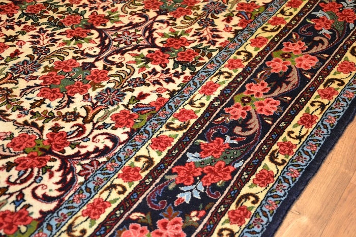 Высококлассный и исключительно красивый, оригинальный персидский ковер БИДЖАР - (в народе называемый «железным ковром Персии», из-за его долговечности и прочности), соткан вручную и изготовлен из овечьей шерсти высочайшего качества. Подтверждено сертификатом качества и происхождения, с плотно скроенным блестящим флисом. Восточный дизайн (основное поле и бордюр украшены чудесными композициями из роз) и гармонично контрастирующие цвета делают его в разложенном виде необычайно красивым и впечатляющим.
