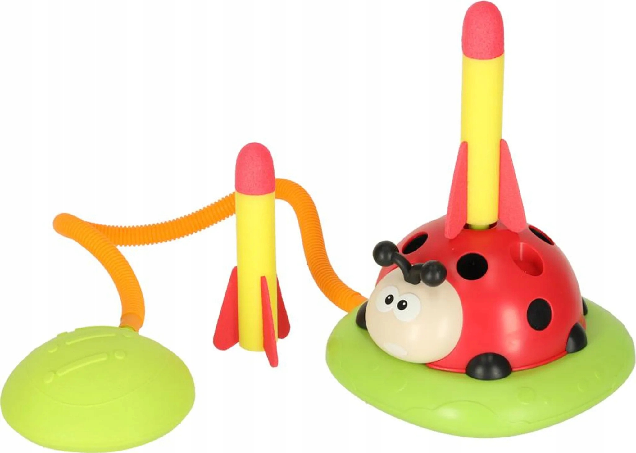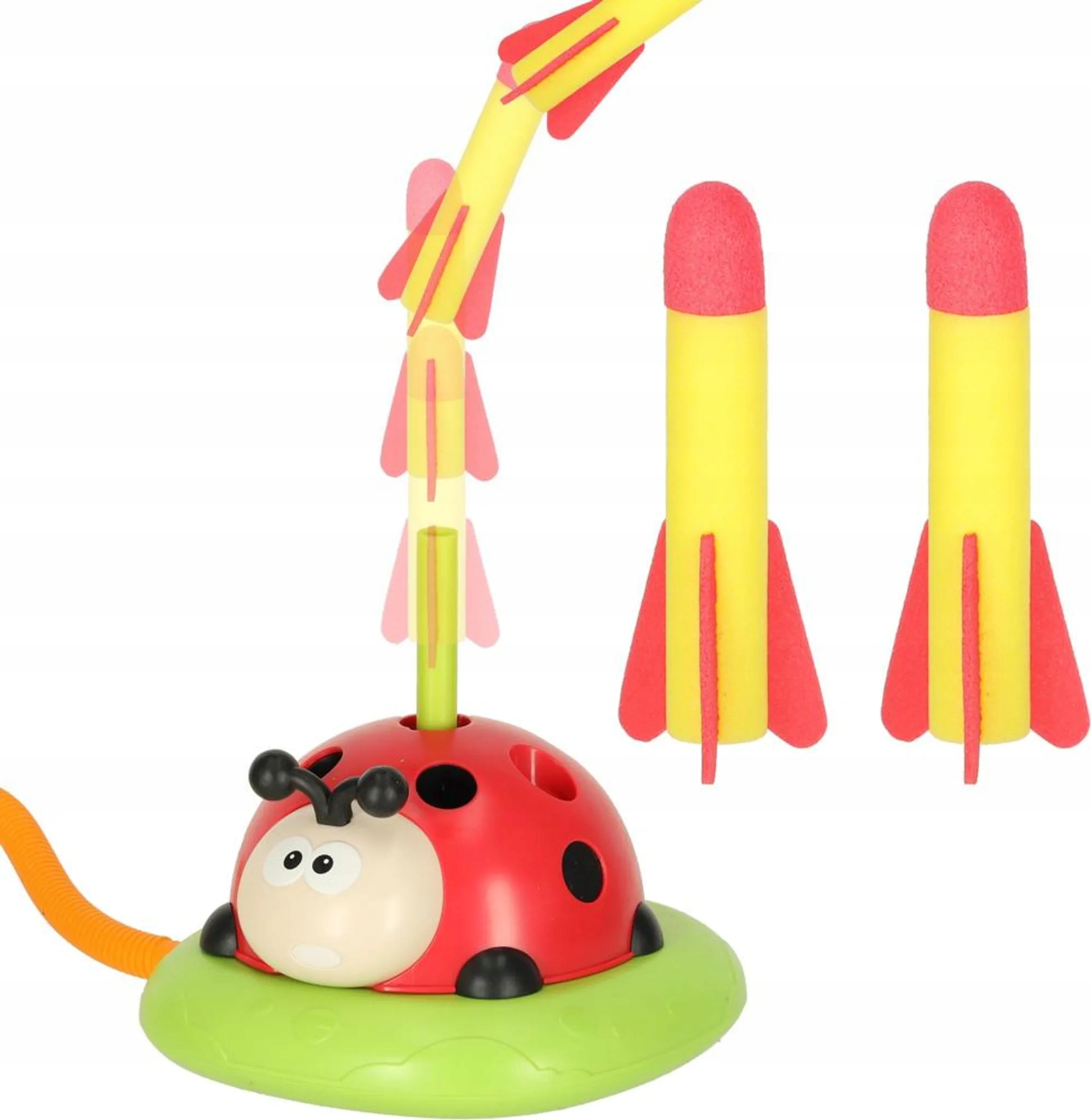 - Игра 3 в 1 - божья коровка служит аркадной игрушкой, в которой ребенок может перепрыгивать вращающееся препятствие, бросать в цель обручи и ловить запущенную ракету.