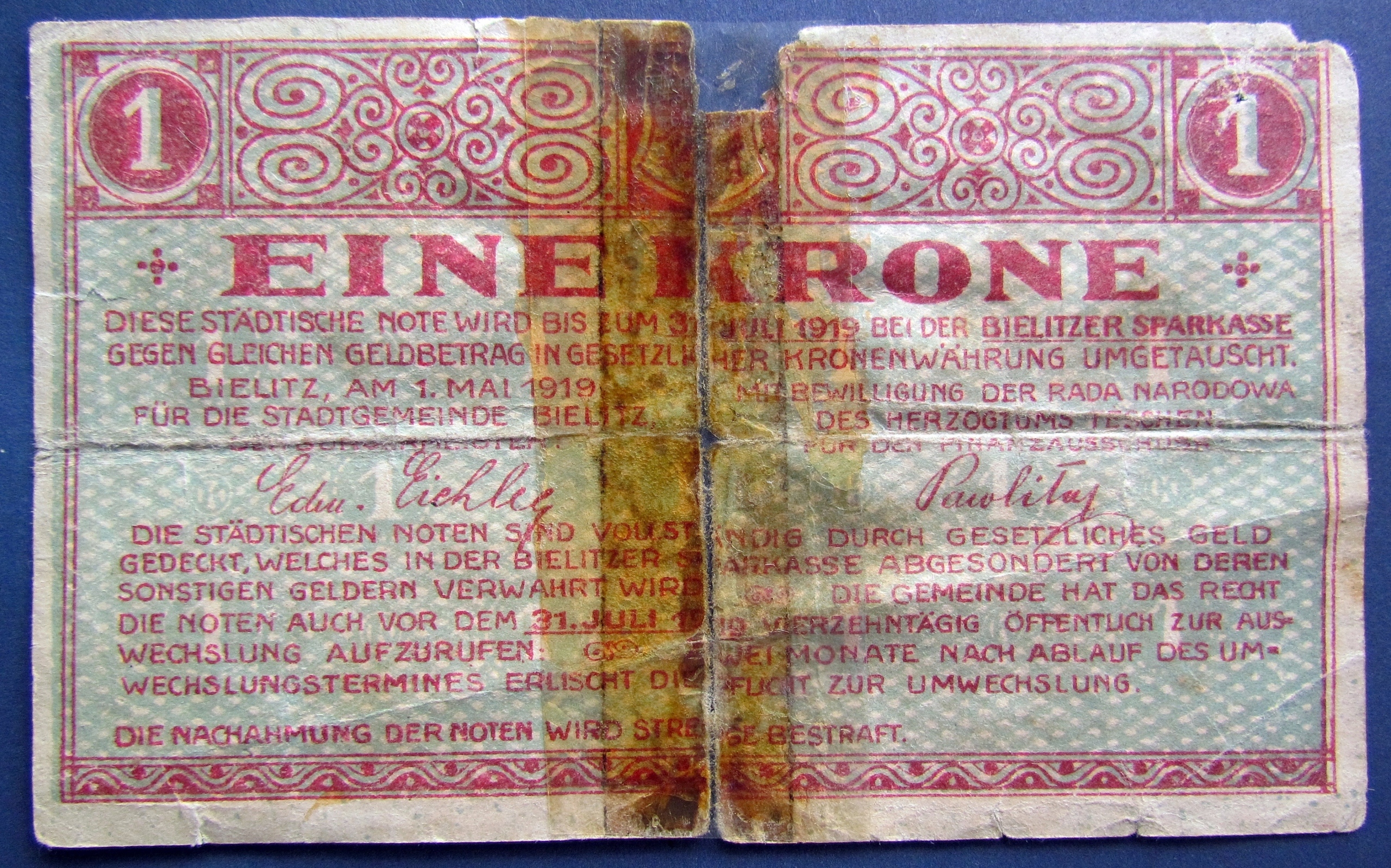 Bielsko Biała 1 Korona 1 мая 1919 г., notgeld- High Rarity