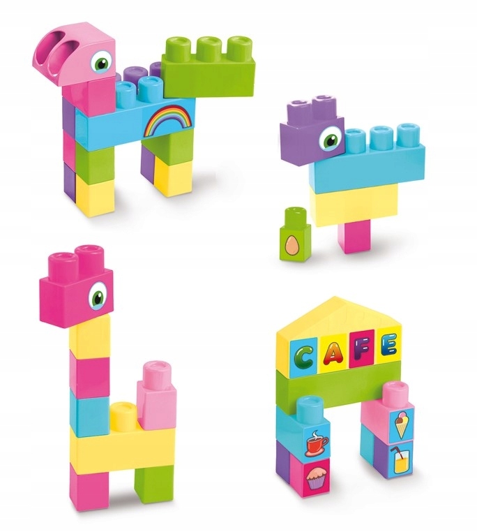 - набор из 26 разноцветных блоков уникальных оттенков розового, фиолетового, сочного зеленого, синего и сладкой ванили