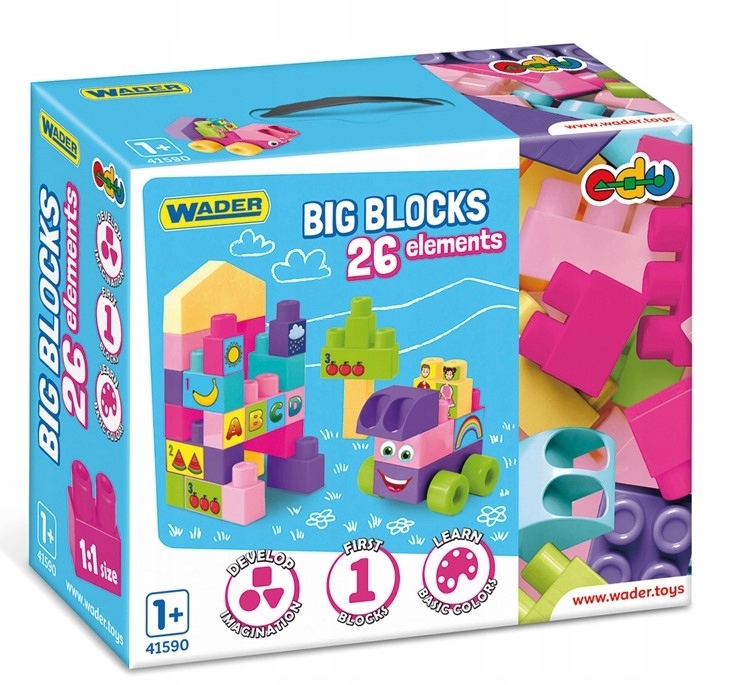 Big Blocks Pink — это набор больших красочных блоков уникальных оттенков розового, фиолетового, сочного зеленого, синего и сладкой ванили. Блоки Big Blocks Pink предоставят безграничные возможности для развлечения каждому любителю творчества. здания с блоками. В набор входят 26 элементов блоков различной формы и цвета, что дает множество возможностей при сборке, а также набор красочных наклеек для украшения конструкции. Наклейка содержит цифры, буквы, символы, фрукты, овощи, животные и множество других интересных картинок. Большие блоки отличаются очень простой системой сборки и размером, идеально подходящим для рук самых маленьких детей. Разнообразие форм позволяет создавать из блоков различные здания, транспортные средства и персонажей, развивая фантазию и творческое мышление вашего ребенка.