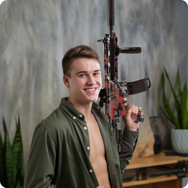 ⭐ много -функциональная винтовка с 2 режимами съемки - позволяет адаптировать веселье к предпочтениям пользователя. В автоматическом режиме он снимает серию, а в руководстве по одному выстрелу - один выстрел.