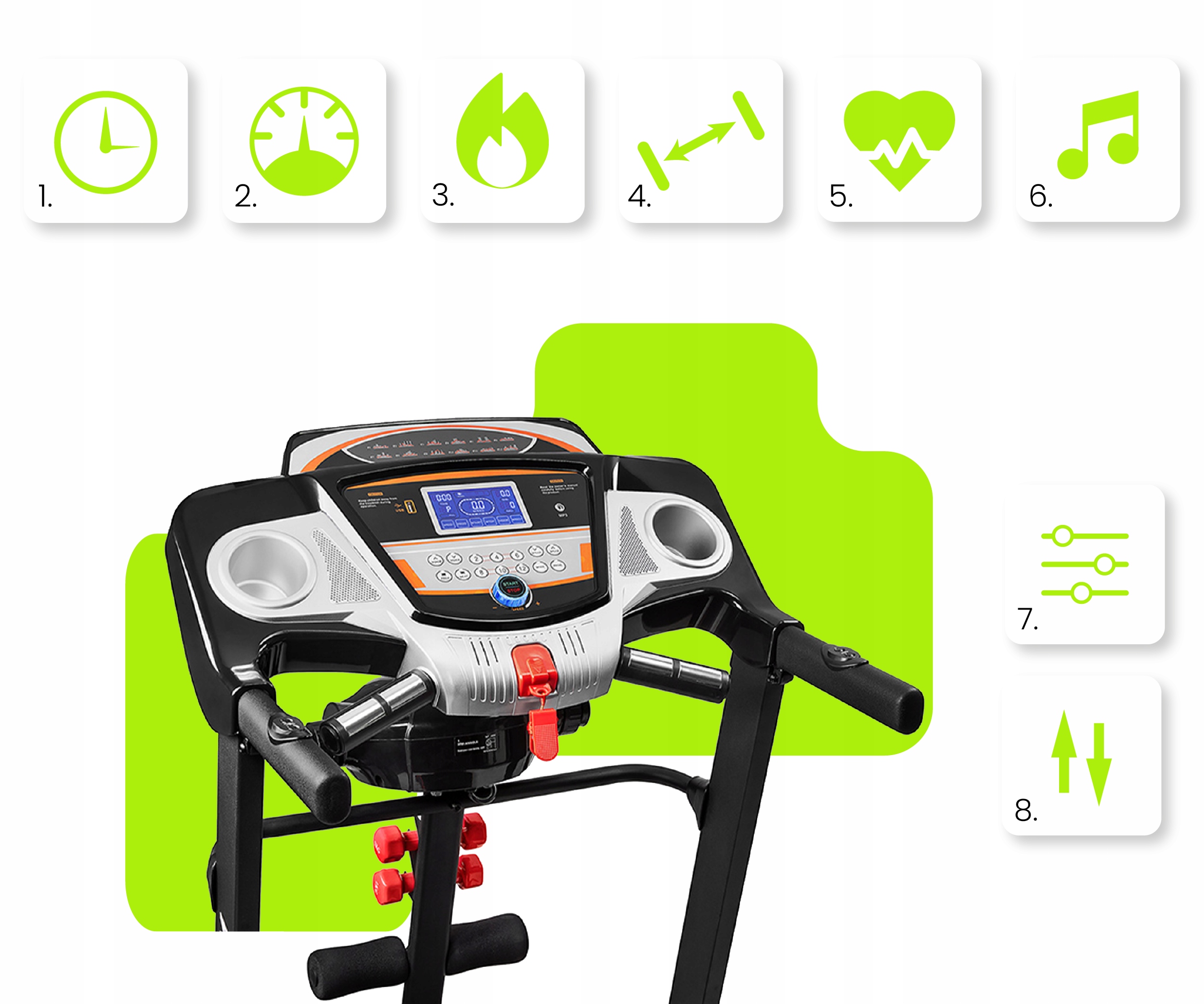 • Функция складывания беговой дорожки — сэкономьте ценное пространство в помещении и быстро сложите беговую дорожку.