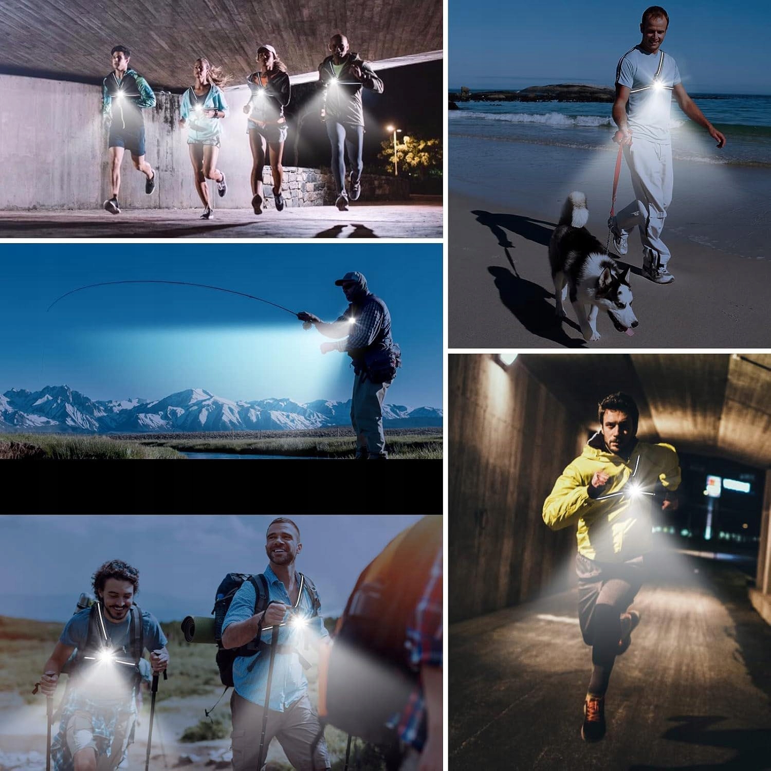 Этот нагрудный фонарь для бега соответствует стандарту IPX5 и защищает вас от брызг воды откуда угодно, не беспокоясь о дожде или снеге. Ремешок весит всего 210 г, мягкий на ощупь, очень удобный и никогда не спадает. Идеально подходит для бега, кемпинга, пеших прогулок, охоты, рыбалки, скалолазания, строительства, ремонта автомобилей, пеших прогулок и других видов активного отдыха в помещении и на свежем воздухе.