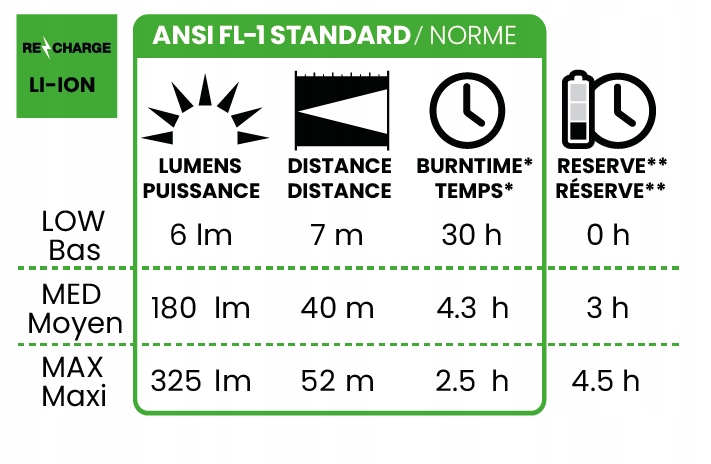 - источник питания - встроенная зарядка аккумулятора Black Diamond через кабель USB-C.