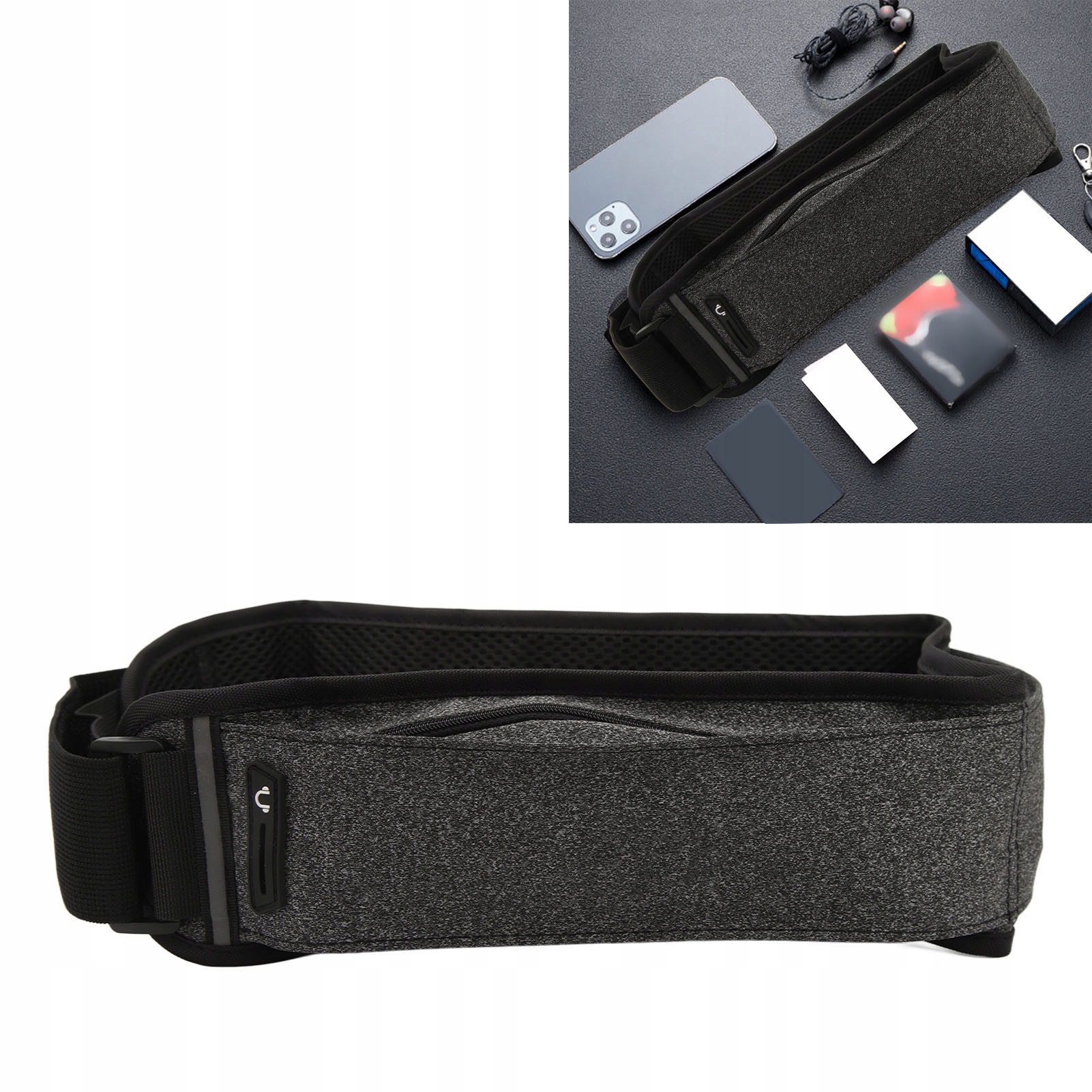 Сумка для бега с поясом для бега, с несколькими карманами, 60–85 см, регулируется, удобна для улицы, черный меланж