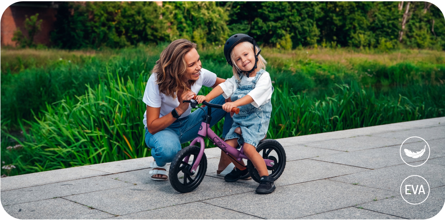 Несомненным преимуществом велосипеда MoMi BREKI является то, что его колеса изготовлены из непроницаемой пены EVA, поэтому ни кочки, ни лесные тропинки вам не страшны.
