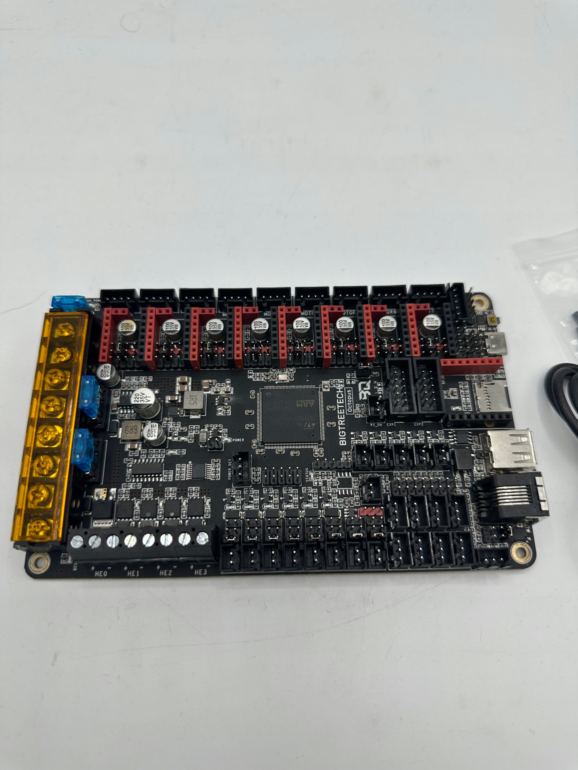 Основная система управления: b> использует 32-разрядную основную систему управления STM32F446ZET6 с ядром ARM Cortex-M4 с частотой 180 МХХ. DIY: Эта материнская плата поддерживает до 8 шаговых контроллеров с 9 шаговыми контроллерами в общей сложности; И до 6 вентиляторов PWM и 2 вентилятора всегда включались с возможностью индивидуального выбора рельса напряжения, который будет стимулировать каждый вентилятор. Выберите из VIN, 12 V или 5 V