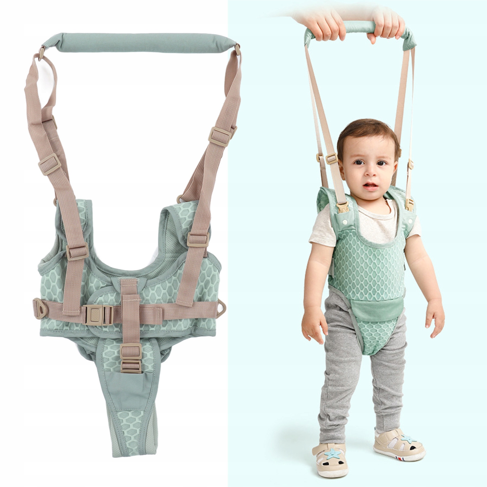 3. Многофункциональный проект: в зависимости от возраста и навыков ребенка, вы можете использовать режим подъема или вытягивания. Благодаря съемной промежности, вы можете удалить ремешок для промежности, когда ребенок может твердо стоять.