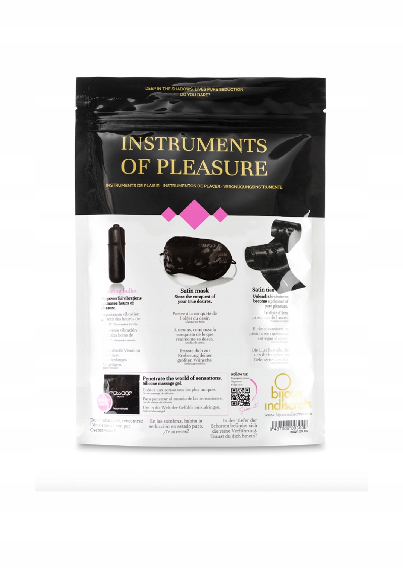 Есть глубокое соблазнение глубоко в тени. Вдохновленные пятьдесят оттенками, мы предоставляем все инструменты, необходимые для обнаружения границ удовольствия. Элементы чрезвычайной чувственности, которые могут быть проведены некоторые из самых интенсивных и оргазмических игр. Содержание: атласные полосы, атласная маска для глаз, силиконовый гель и вибрирующая пуля. Только для внешнего использования