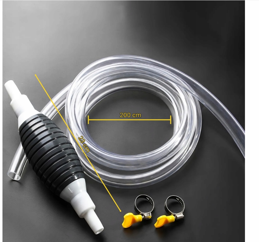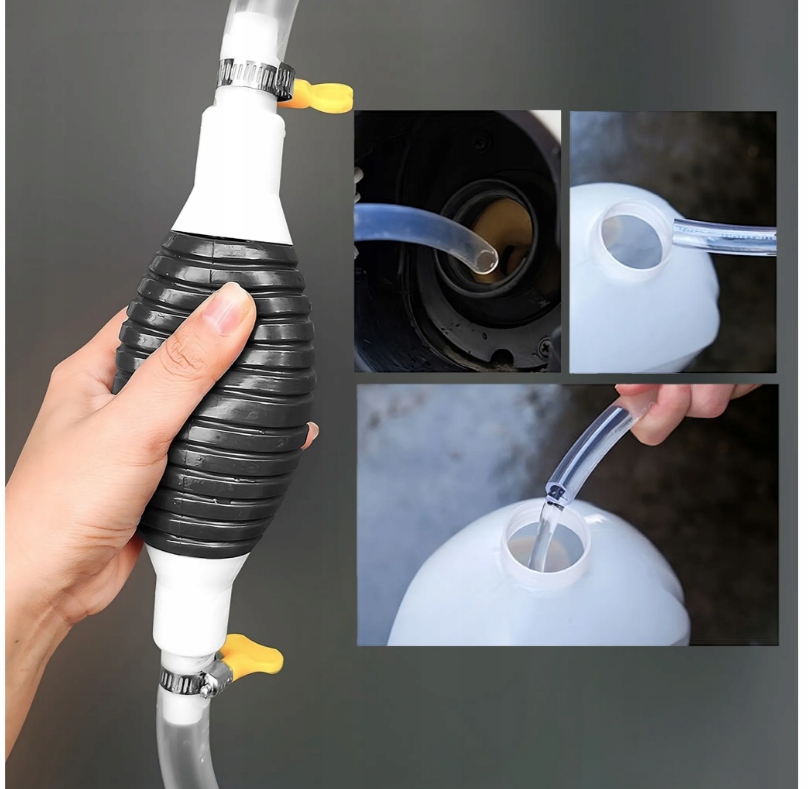 Просто поместите концы шланга в соответствующие ёмкости и несколько раз нажмите на лампочку. Жидкость начнет вытекать автоматически благодаря эффекту вакуума.