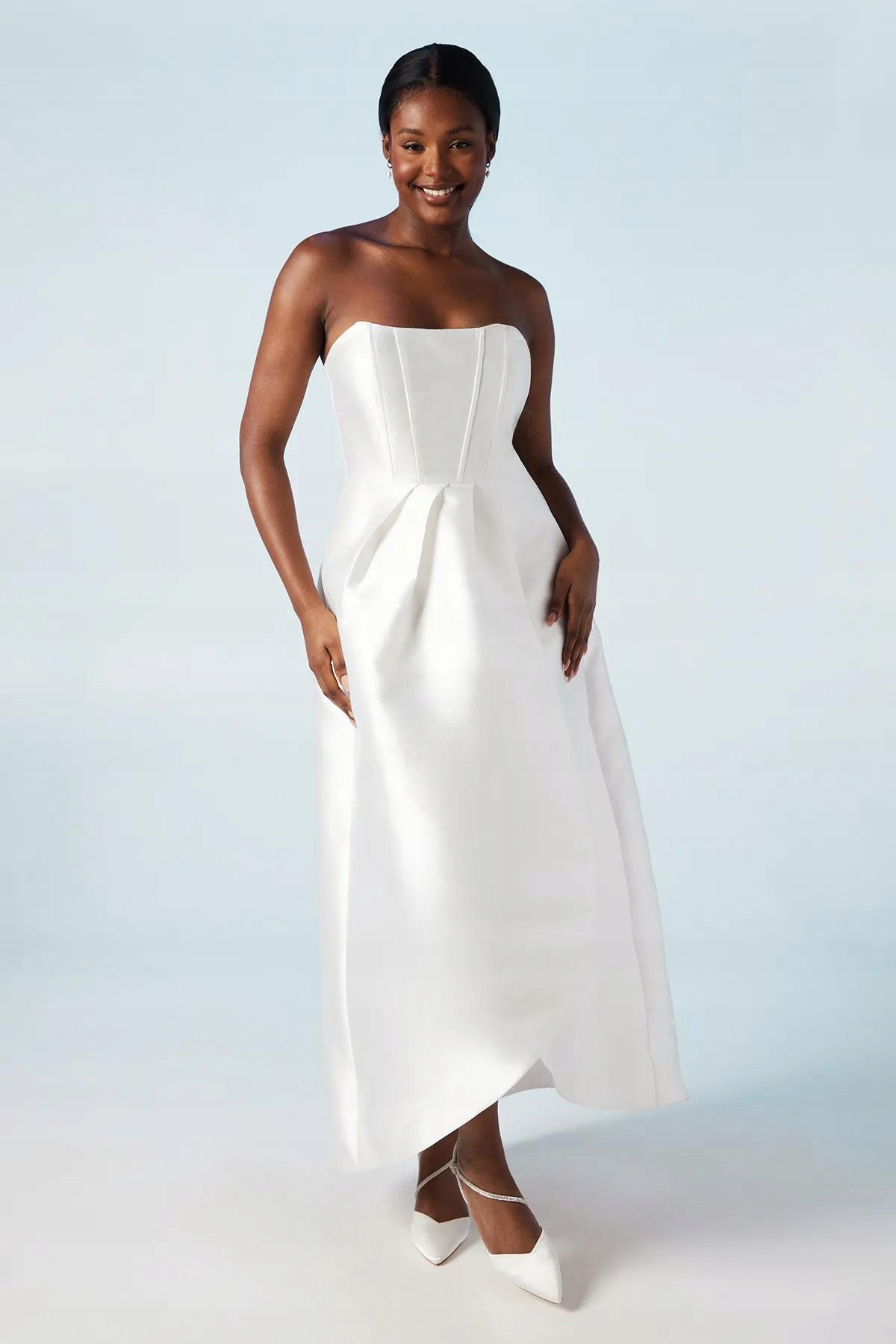 БІЛА АТЛАСНА ВЕСІЛЬНА СУКНЯ МАКСІ РОЗРІЗ БЕЗ БРЕТЕЛЕЙ COAST 40