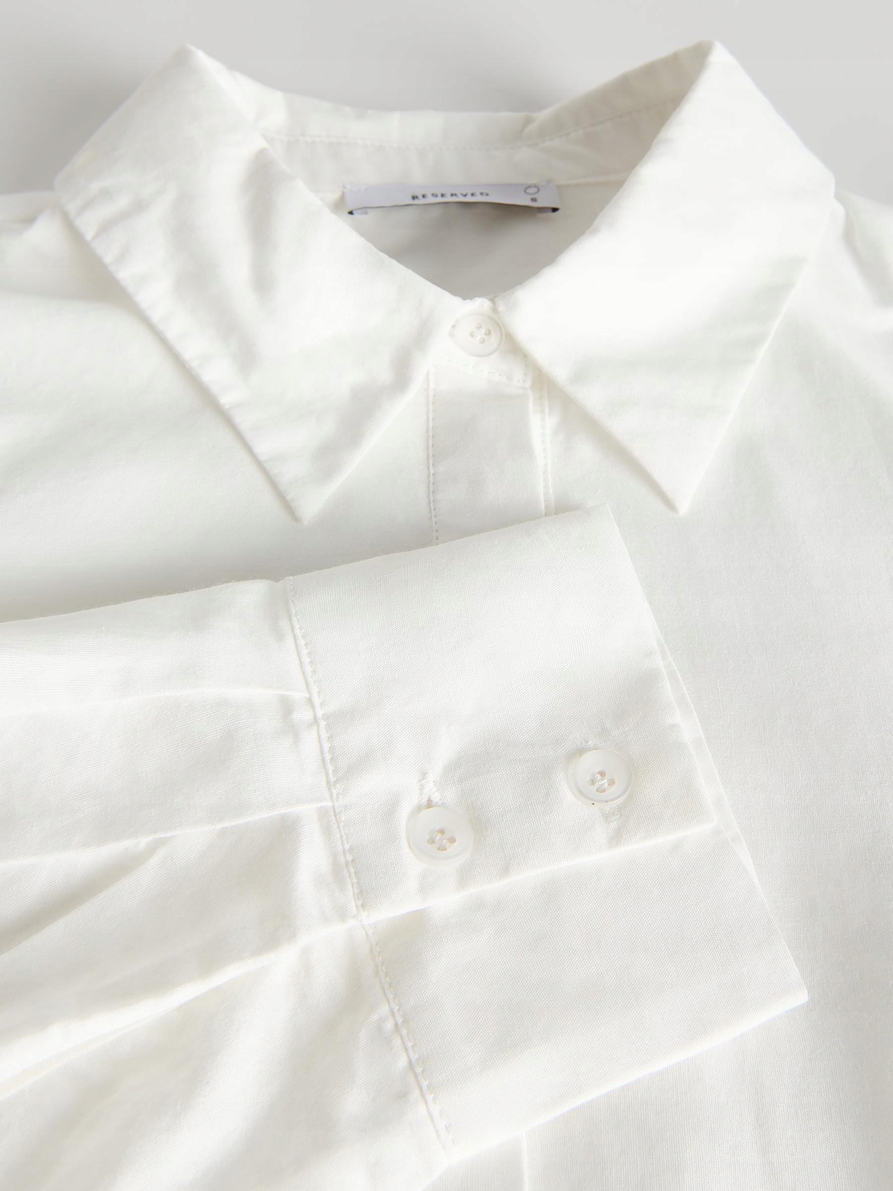 БЕЛАЯ ХЛОПКОВАЯ АЖУРНАЯ РУБАШКА С ДЛИННЫМ РУКАВОМ, ВЫШИВКОЙ, ОТКРЫТЫМ ВОРОТНИКОМ S