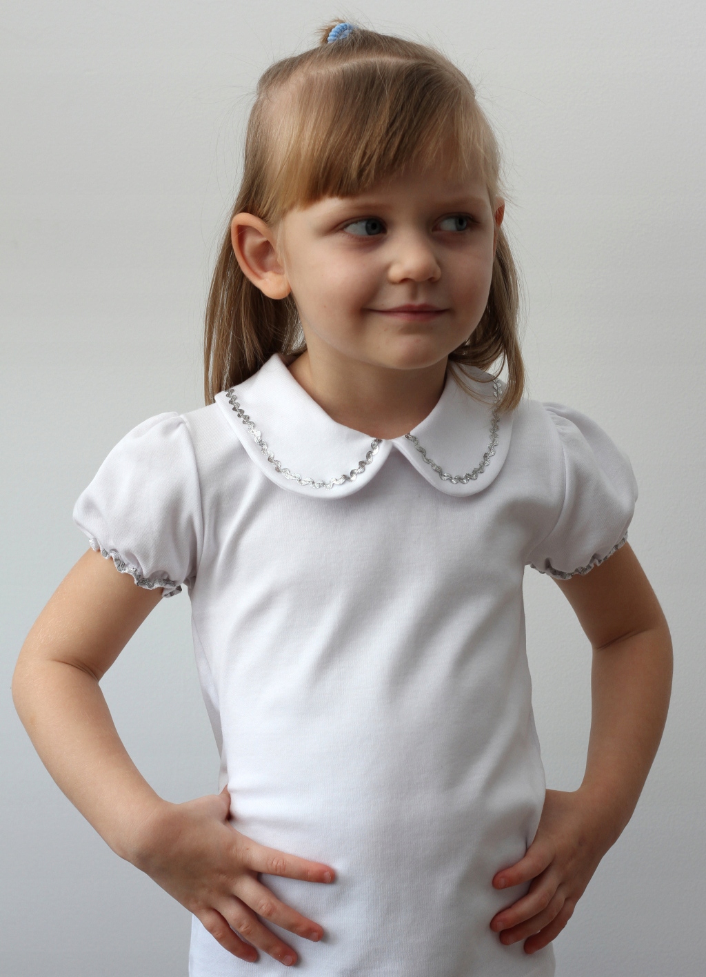 - Блуза белоснежная с воротником, короткими рукавами - 100% хлопок.