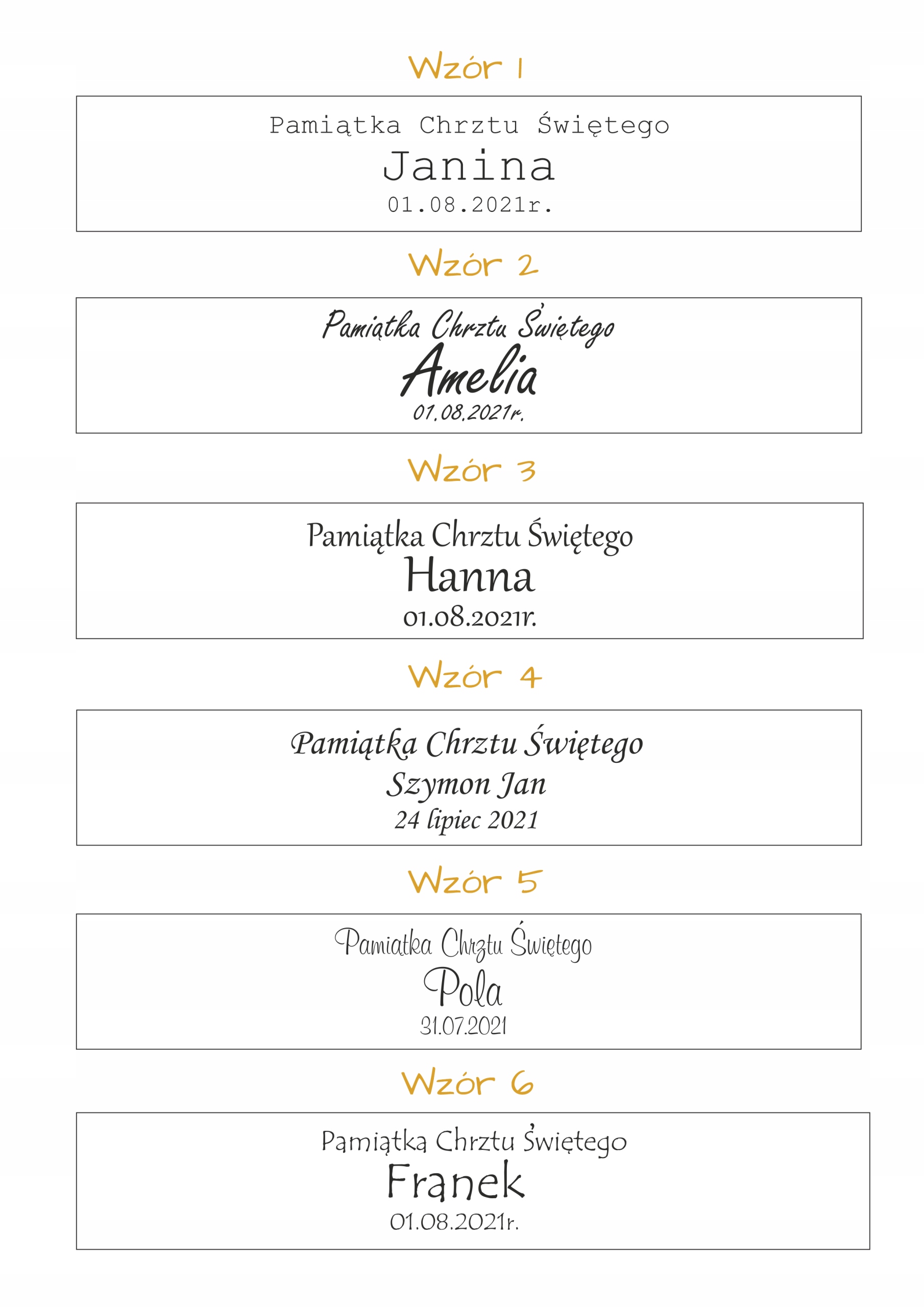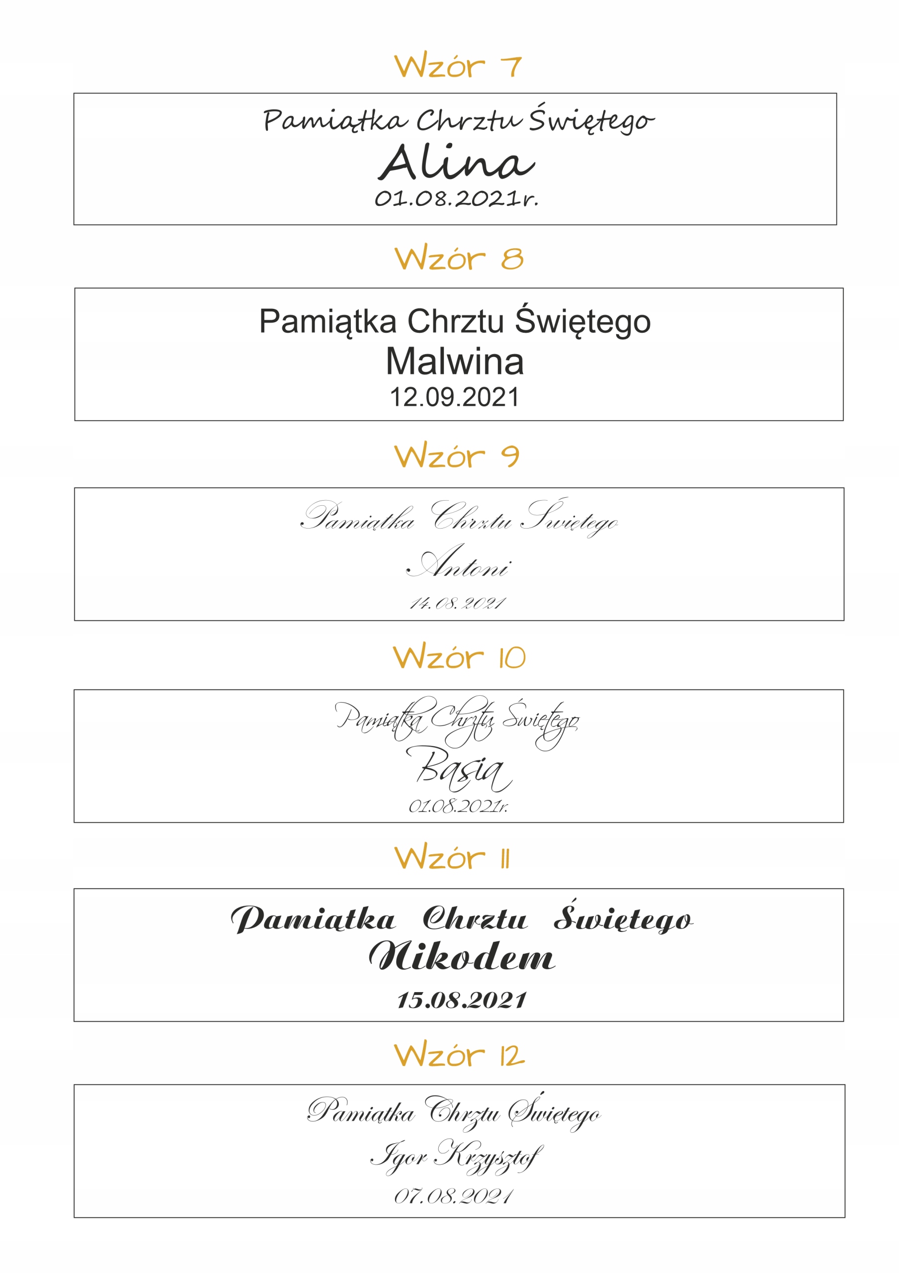 Каждая коробочка имеет свою индивидуально персонализированную гравировку, которая включает в себя: надпись «Сувенир Святого Крещения», имя(имена) ребенка и дату крещения.