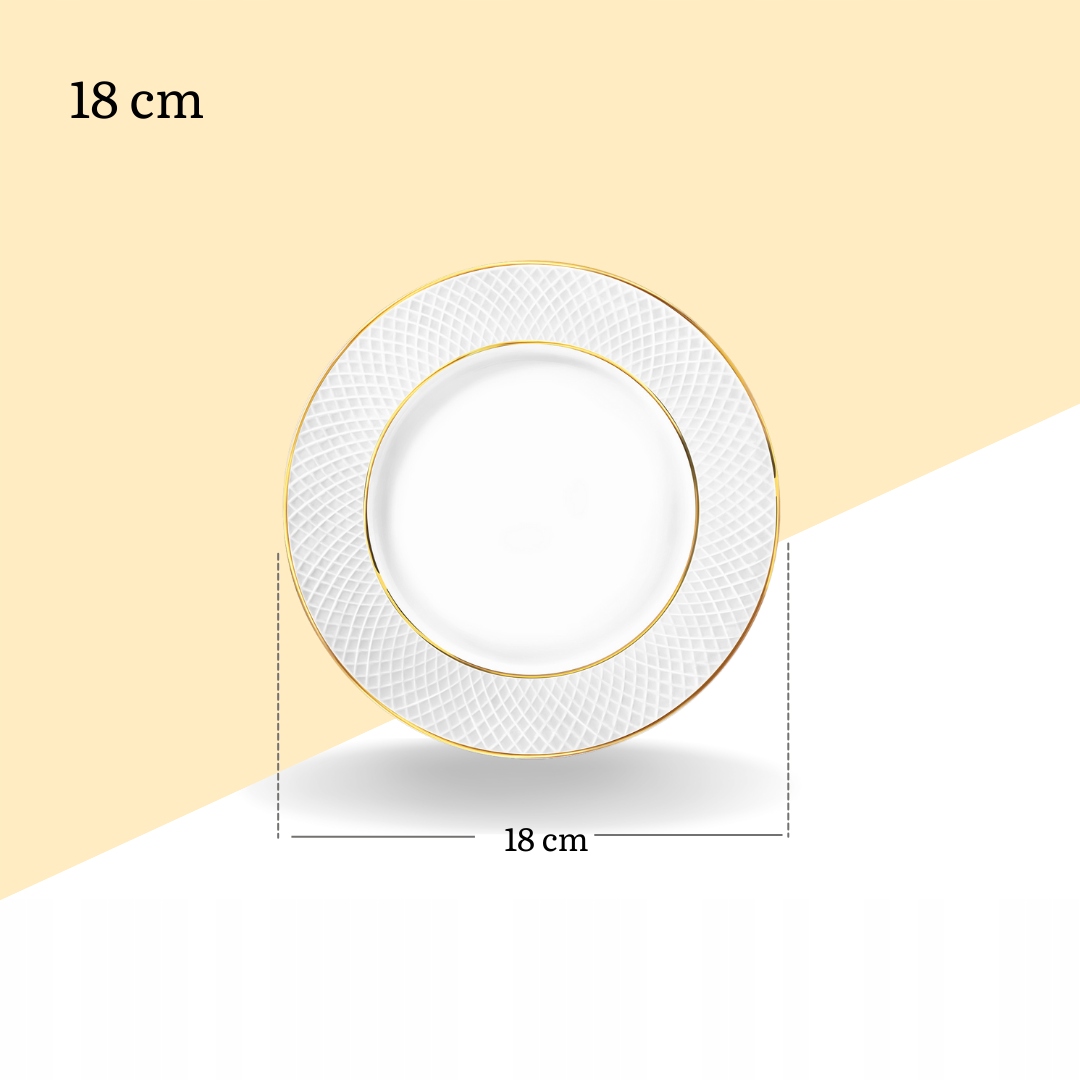 фарфоровая пластина Белый десерт 18 см с золотым краем