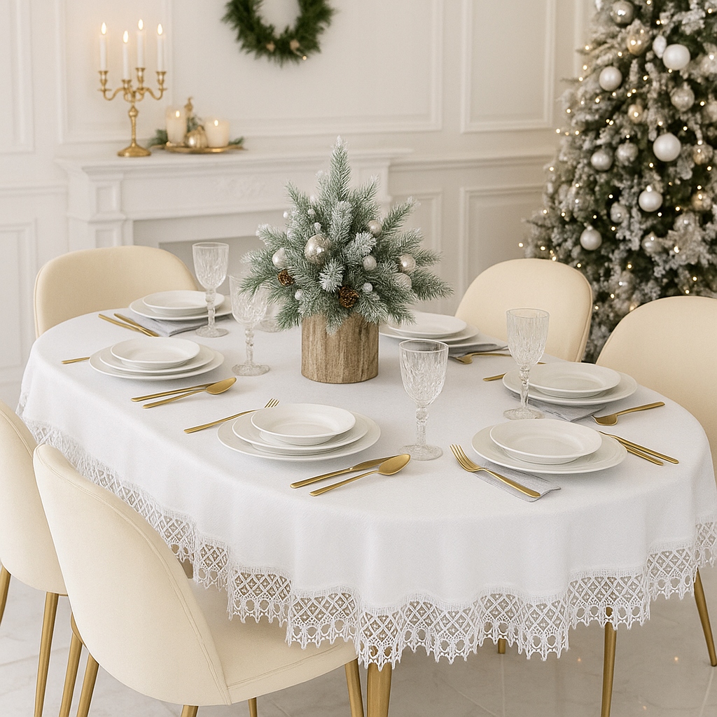 ✔ Цвет: Классический цвет с элегантным гипюром вокруг скатерти