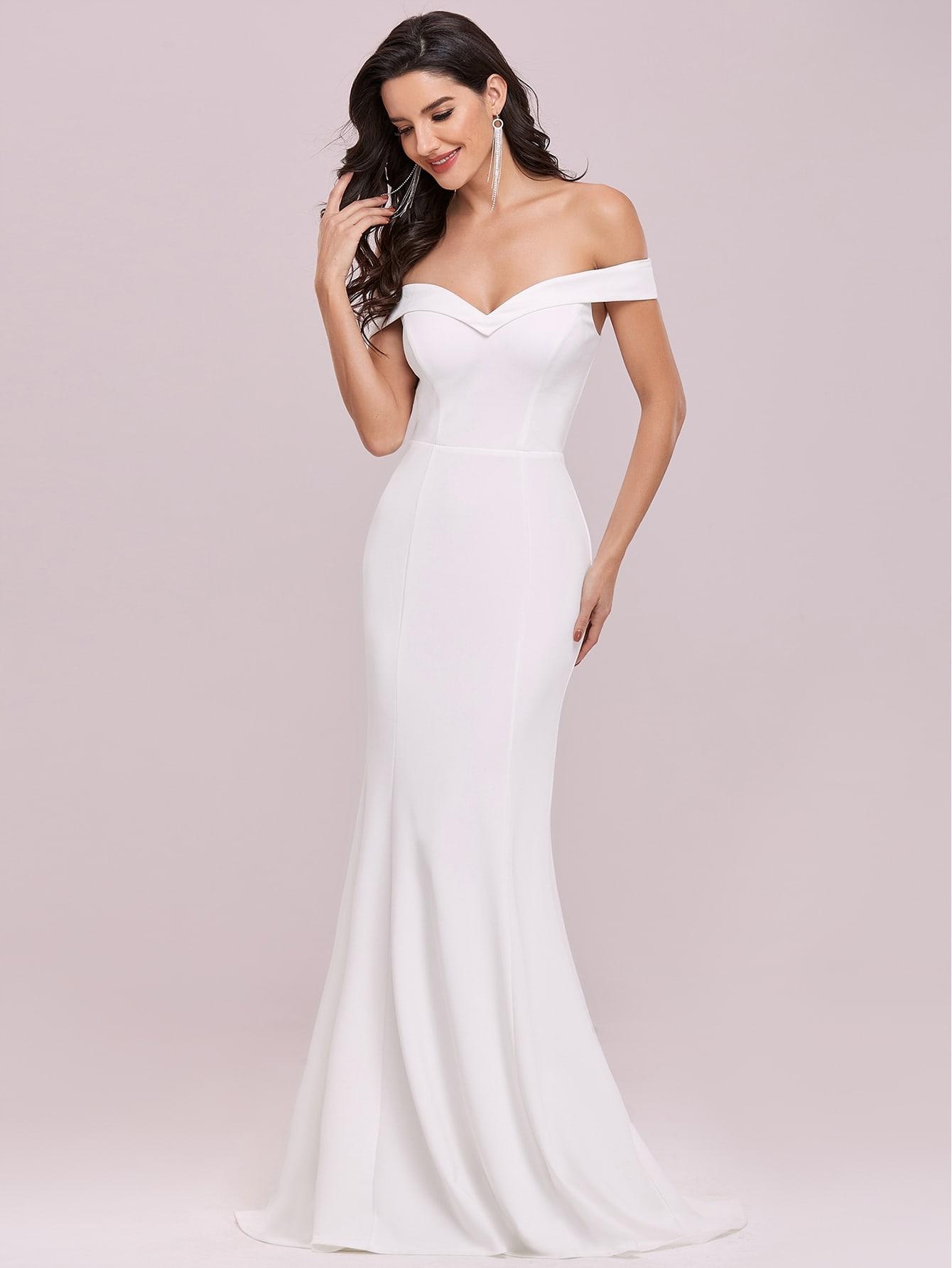 БІЛА ДОВГА ВЕСІЛЬНА СУКНЯ ВІДКРИТІ ПЛЕЧІ ГЛАДКА КЛАСИЧНА EVER PRETTY XXL
