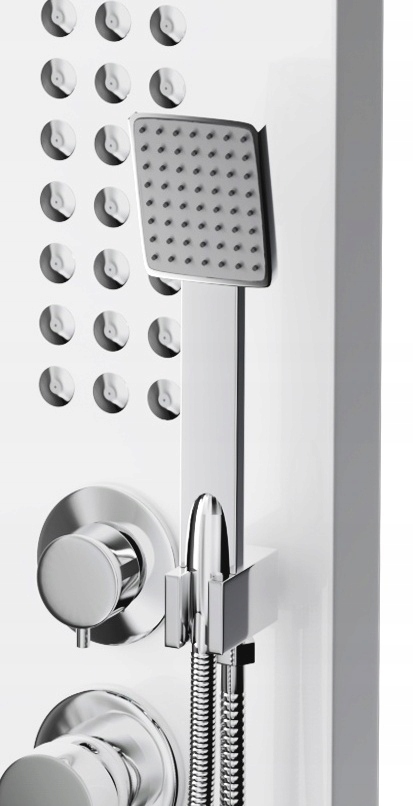 Біла душова панель з гідромасажем + водоспад + вилив + скляна полиця