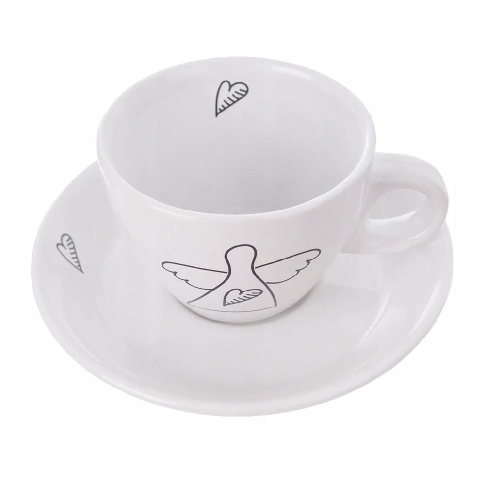 Набор из двух чашек для эспрессо с блюдцем, декорированных мотивом ангела. Изготовлен из белой керамики. Идеальная идея для подарка.