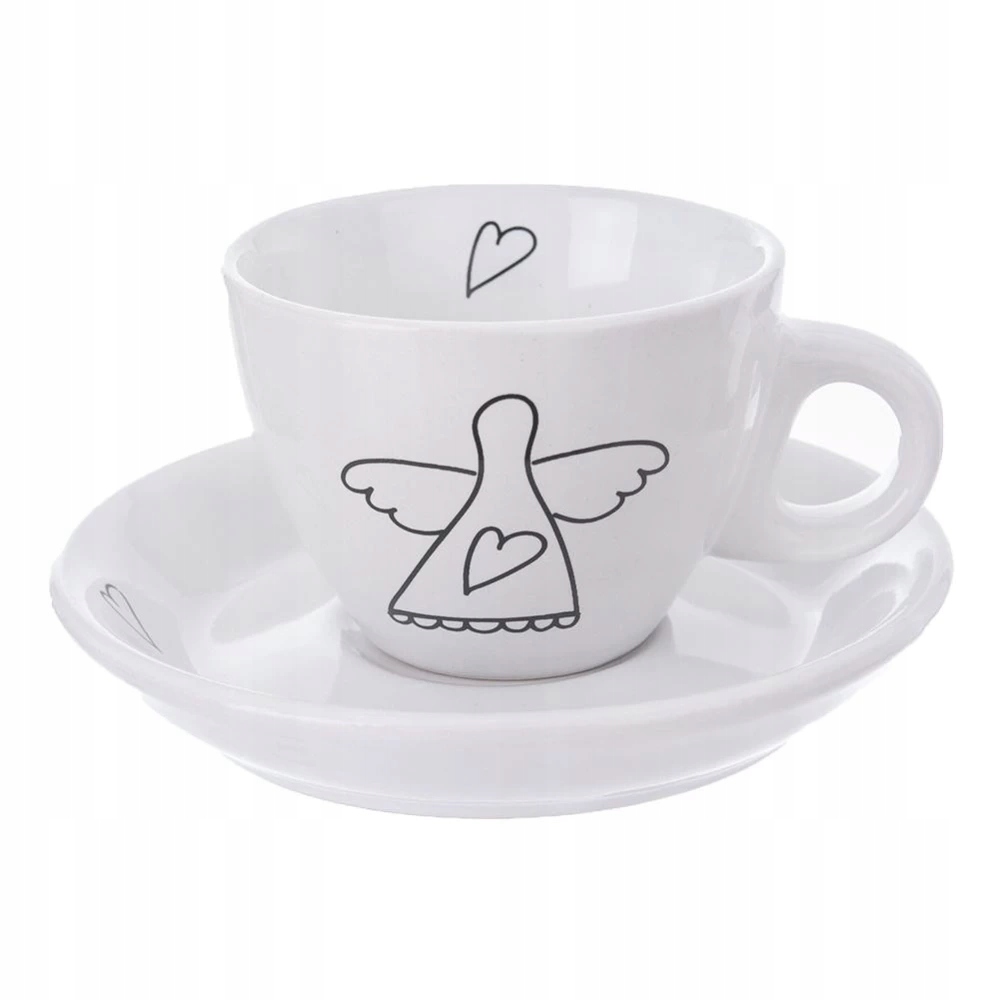 - КЕРАМИКА - Набор изготовлен из высококачественной белой керамики. Они имеют красивый декор с изображением ангела и сердца черного цвета. При правильном использовании они прослужат много лет.