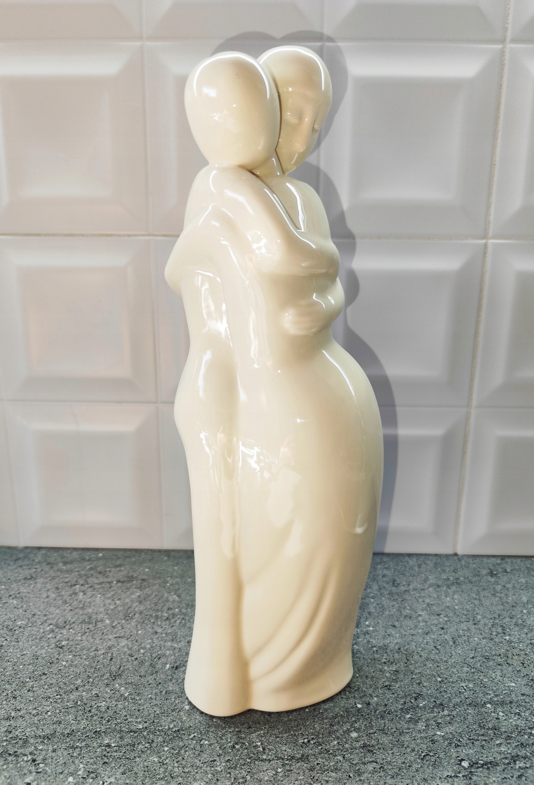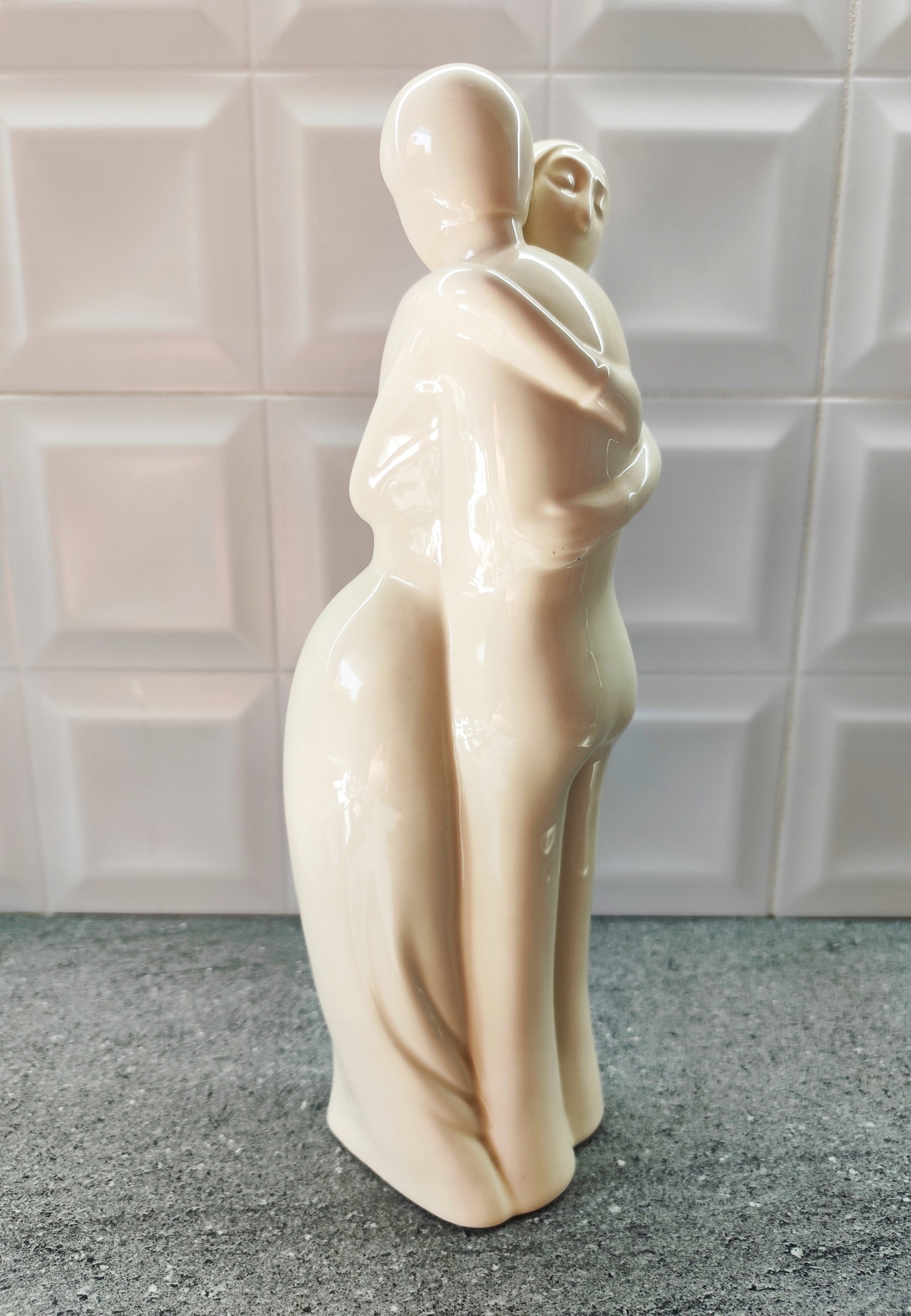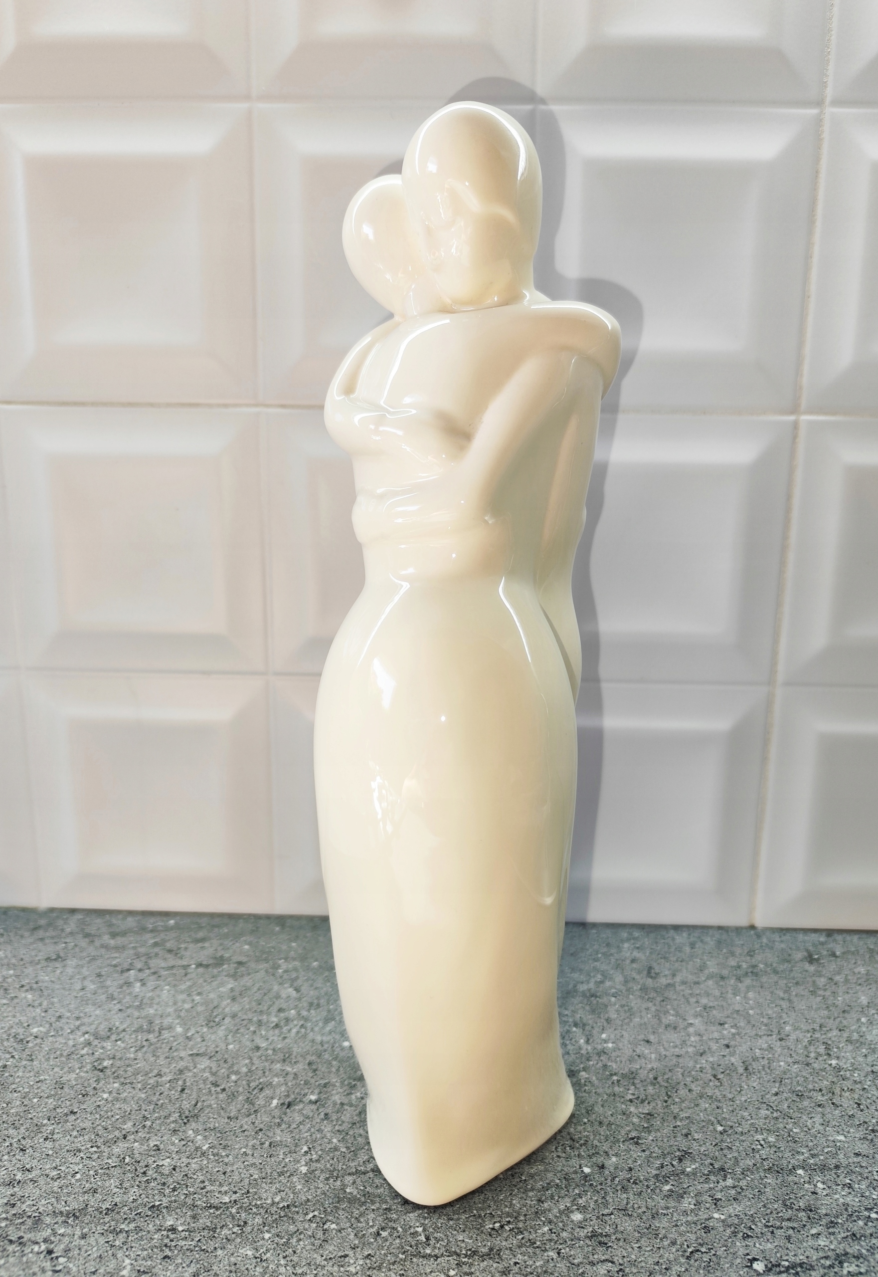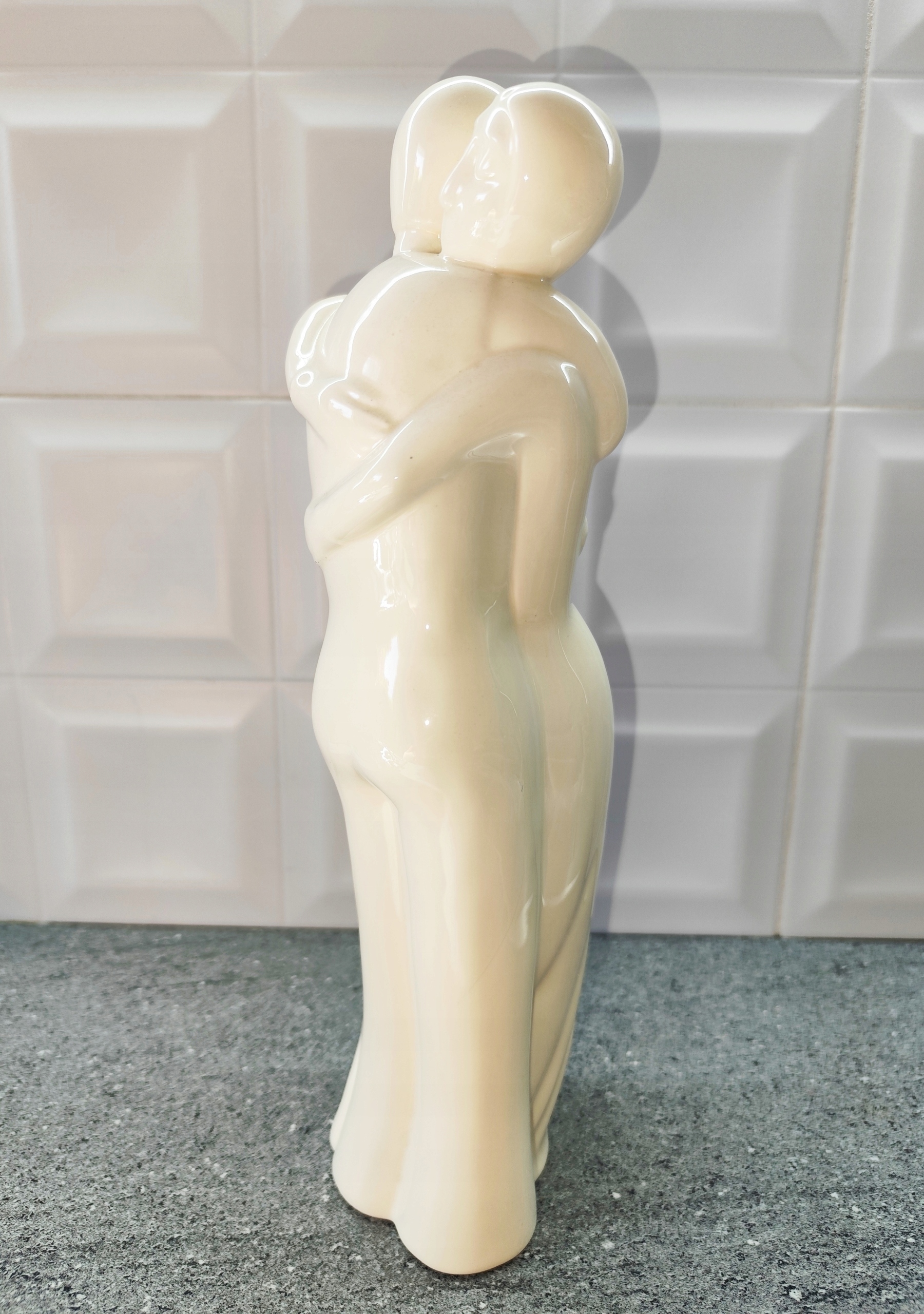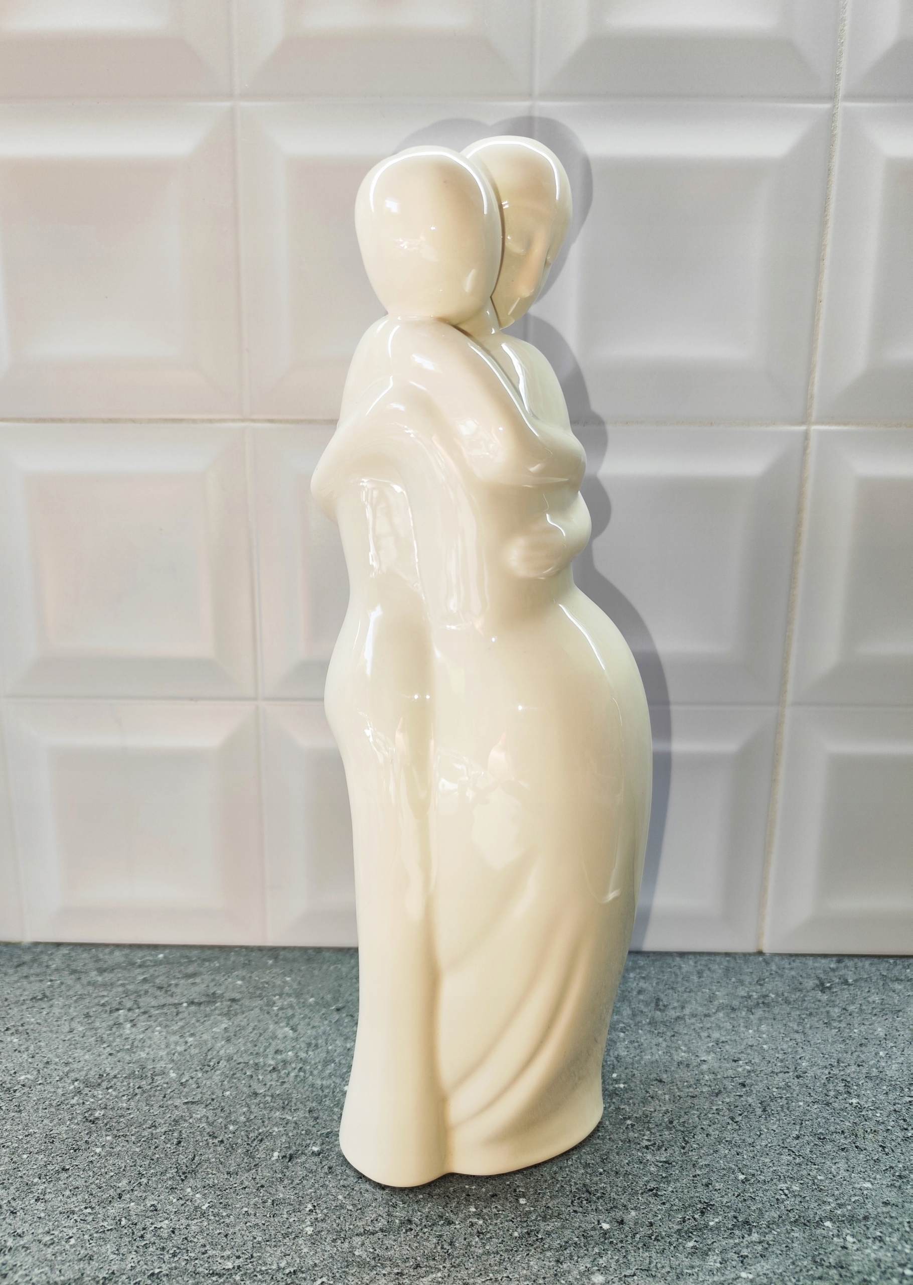 Белая керамическая статуэтка, две фигуры в объятиях, декоративная статуэтка