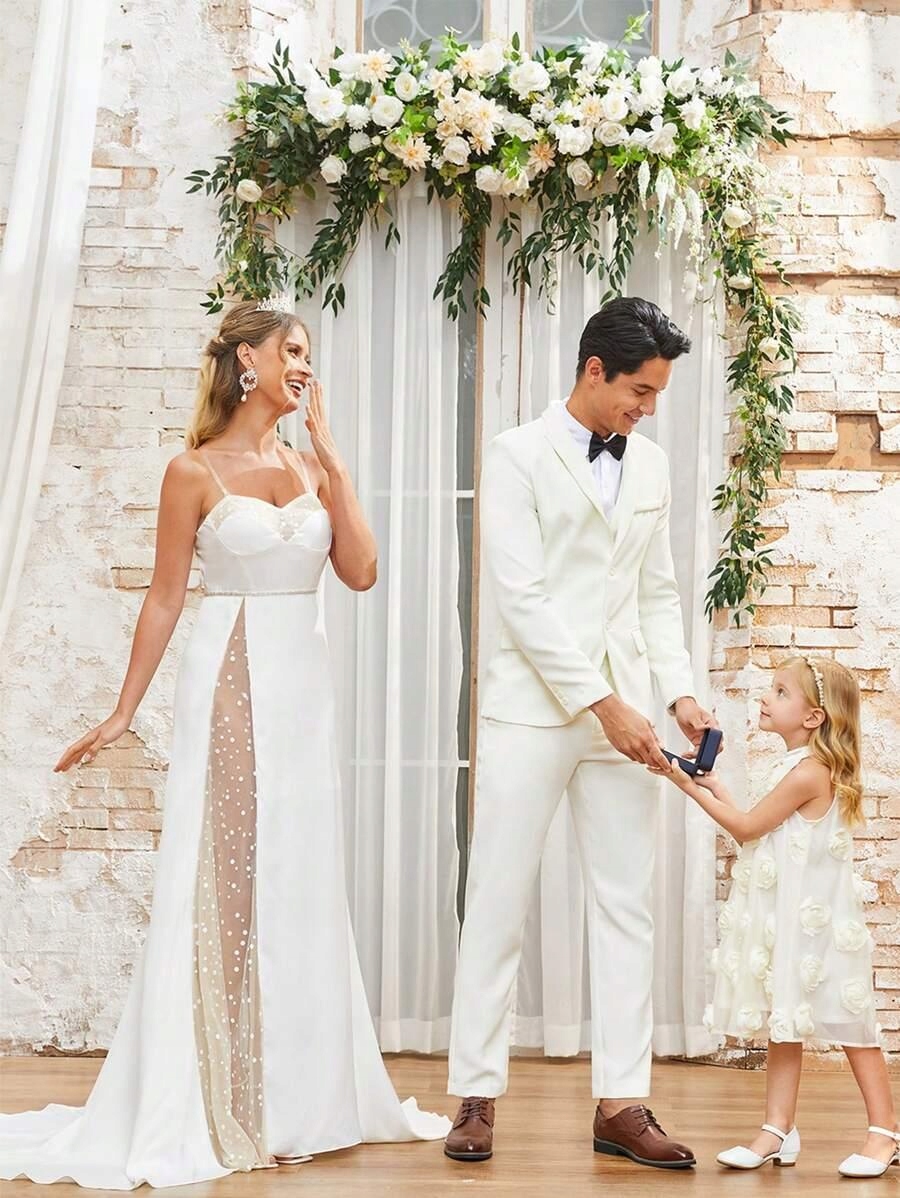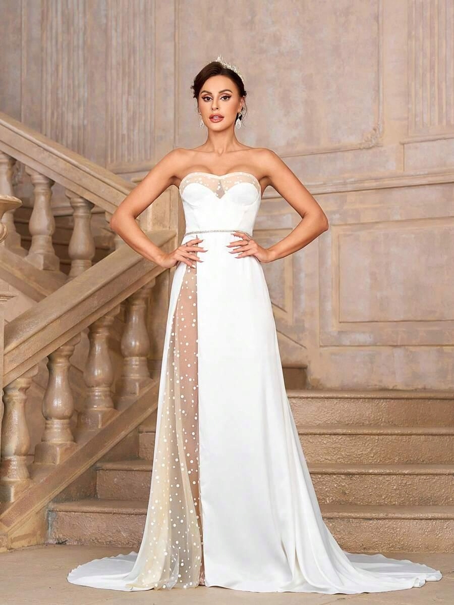 БЕЛОЕ КЛАССИЧЕСКОЕ СВАДЕБНОЕ ПЛАТЬЕ МАКСИ ДЖИНСЫ SHEIN 36