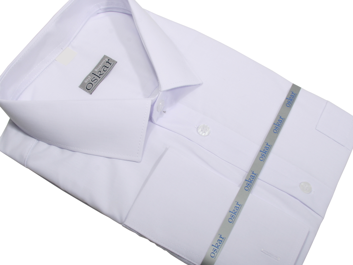 Белая рубашка высочайшего качества, с длинными рукавами и манжетами, застегивающимися на запонки или пуговицы.