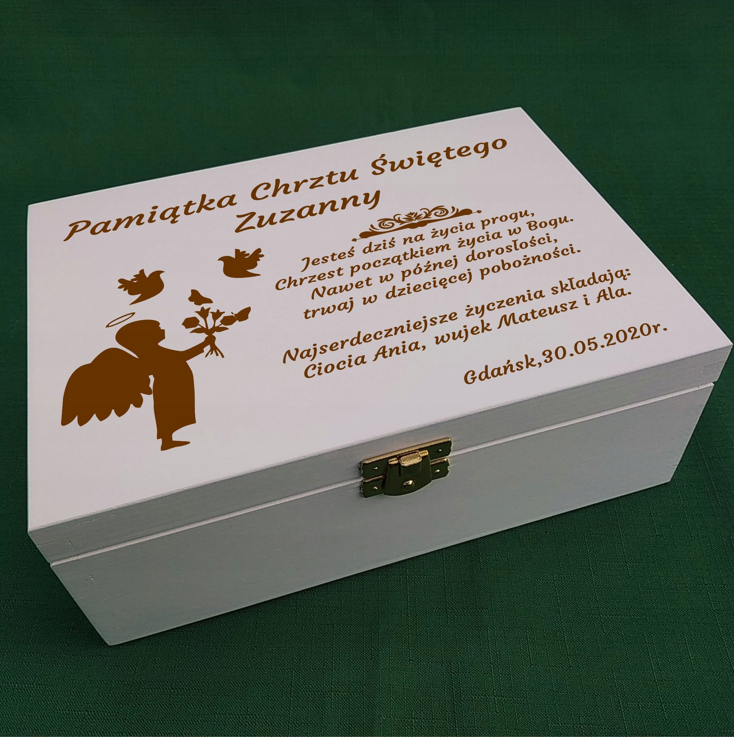 БІЛА коробка на пам'ять на хрещення дитини з гравіюванням