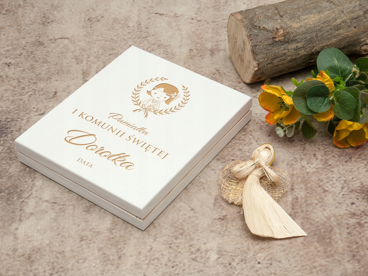 біла коробка СУВЕНІР І Св. Причастя Ім'я АНГЕЛ